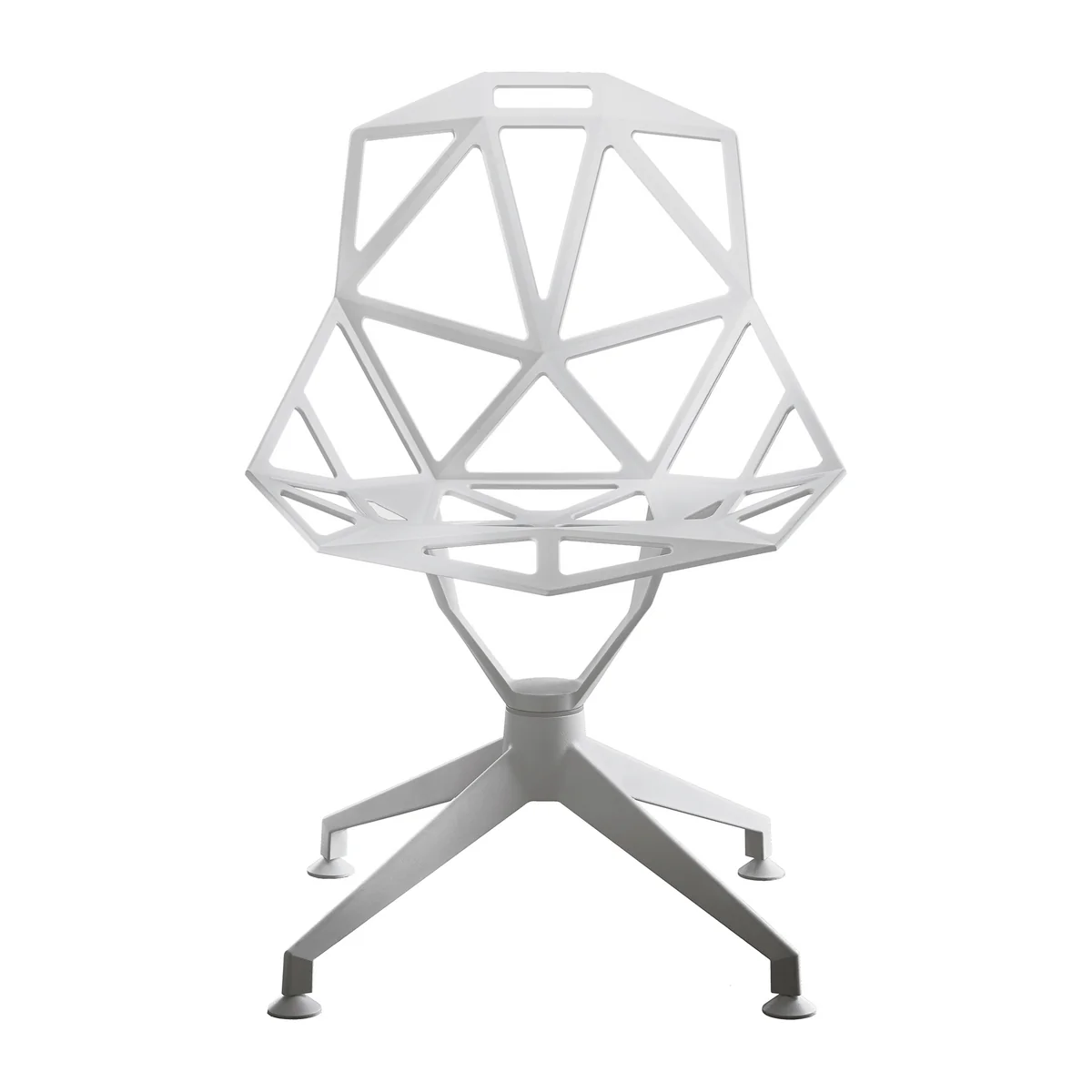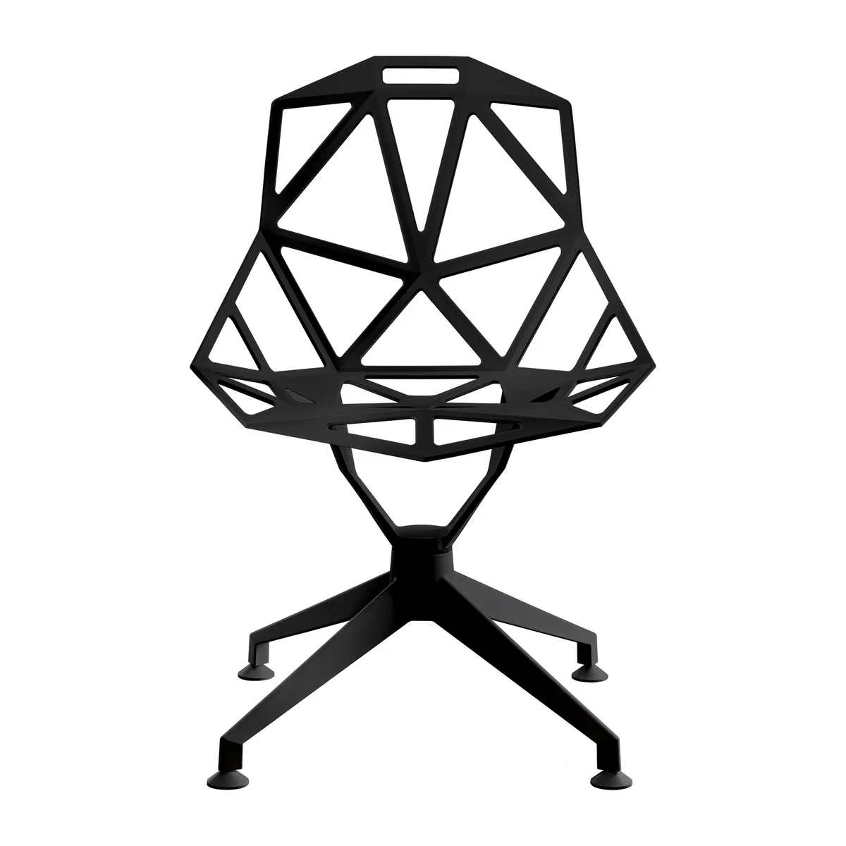 Maar de Chair One 4Star is geenszins een avant-garde zitmeubel. De stoel is een samenspel van materiaal, design en industriële productie. Chair One 4Star rust op een vierpootskruis en is daardoor draaibaar. Het kan zowel binnen als buiten worden gebruikt omdat het is behandeld voor roestbescherming en brandvertragend is.