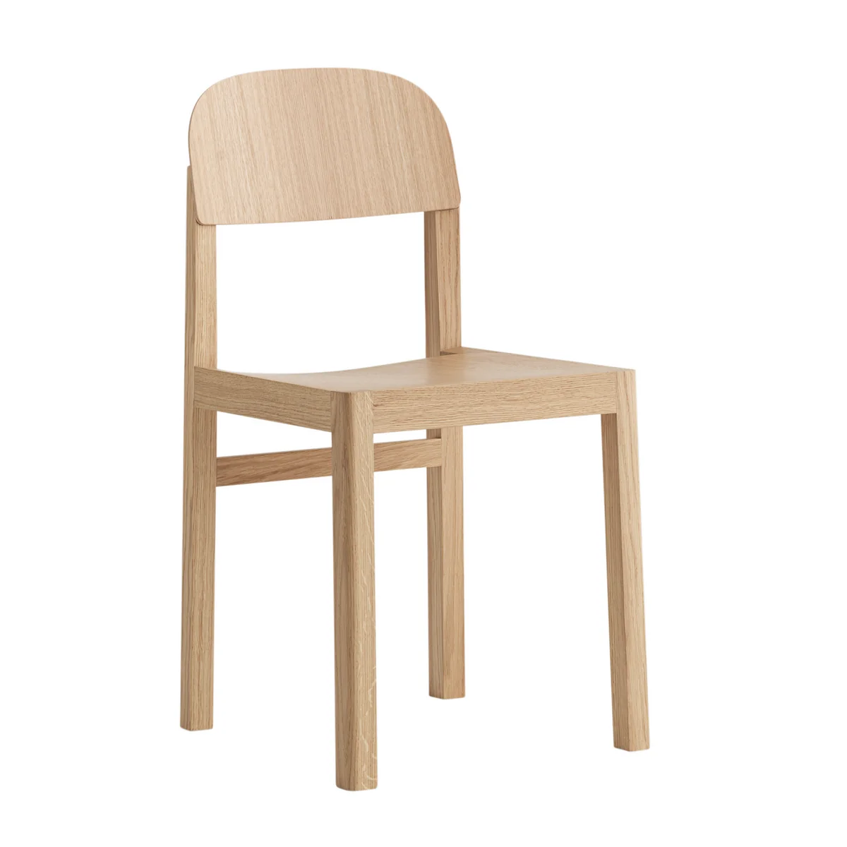 De Workshop Chair van Muuto is een klassieke, stijlvolle stoel met een frame van massief eiken of douglas. Het is ontworpen door de in Kopenhagen gevestigde productontwerper Cecilie Manz voor Muuto. De ontwerper gebruikte een archetypische vorm, die het midden houdt tussen traditioneel, fijn vakmanschap en hedendaags design.