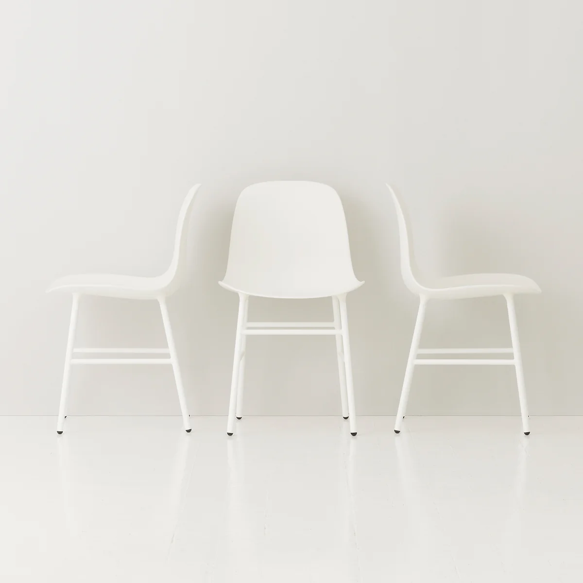 De Form stoel met stalen poten van Normann Copenhagen is een stoel, waarvan het klassieke en ook moderne design geschikt is voor allerlei doeleinden en plaatsen.