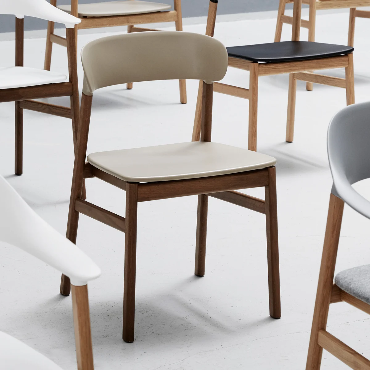 Door het gebruik van op elkaar afgestemde materialen, een kundig mengsel van elegante en natuurlijke uitdrukkingen en een hoogwaardige afwerking kan de Herit stoel naadloos in elke omgeving worden geïntegreerd en ziet hij er fantastisch uit op kantoor of aan de eettafel. Alleen in de gang of slaapkamer geplaatst, is het meubelstuk een stijlvol hoogtepunt dat een stukje Deense designgeschiedenis in uw eigen huis brengt.