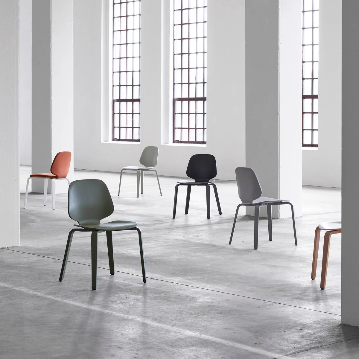 Normann Copenhagen's My Chair is al in 2013 ontworpen door Nicholai Wiig Hansen. De stoel met een stalen frame en een gefineerde zitschaal is al een klassieker. Gemaakt van voorgevormd fineer dat gemakkelijk meebeweegt met het lichaam, ziet de stoel er eenvoudig en tijdloos uit. De strakke vormentaal van de stoel vindt zijn tegengewicht in de afgeronde hoeken en de gebogen taille. Met zijn eenvoudige, minimalistische uitstraling is de stoel geschikt voor zowel privé als openbaar gebruik. Verschillende stapelbare My Chair stoelen zorgen samen voor een harmonieus en discreet beeld in de ruimte.