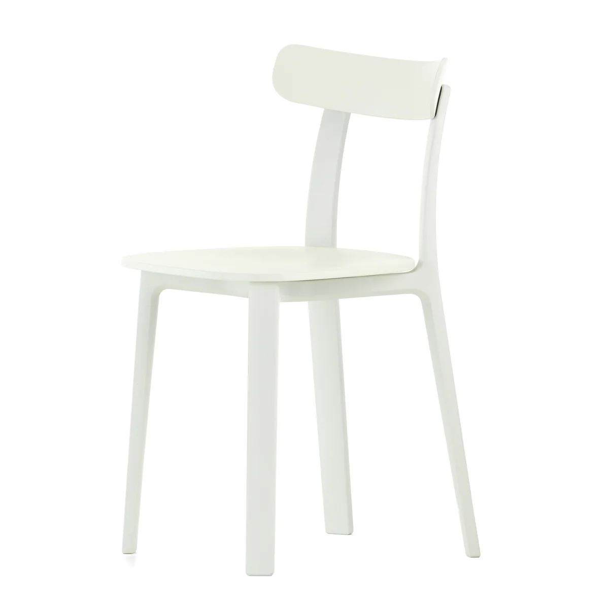 Dankzij het gebruik van hoogwaardige licht- en waterbestendige kunststoffen is de All Plastic Chair is een robuuste en duurzame stoel voor gebruik binnen en buiten. Het is geschikt voor gebruik aan de privé-eettafel, maar ook in cafés, restaurants en andere openbare ruimten.