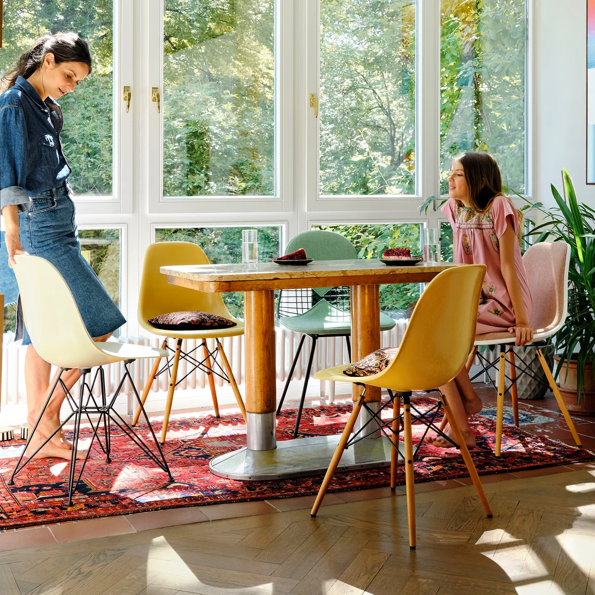 De Wire Chairs van Charles en Ray Eames zijn formeel een variant van de Eames Plastic Side Chairs. DKR met het legendarische "Eiffeltoren onderstel", combineert transparantie en functionaliteit.
