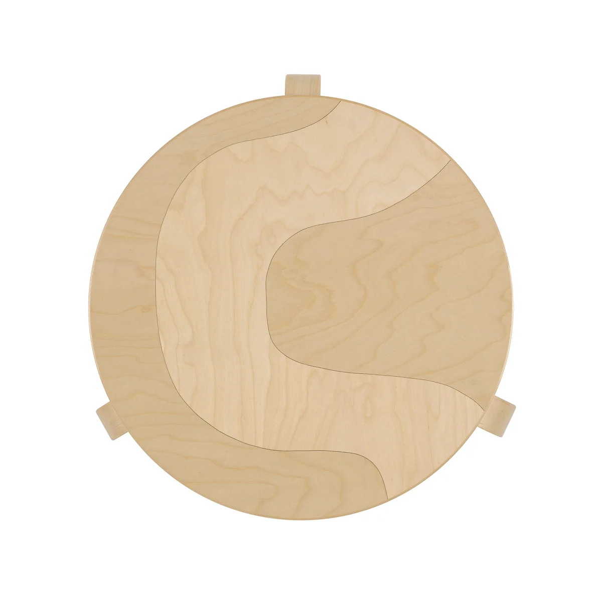 - Rond tafelblad van berkenhout met iconische Marimekkopatronen