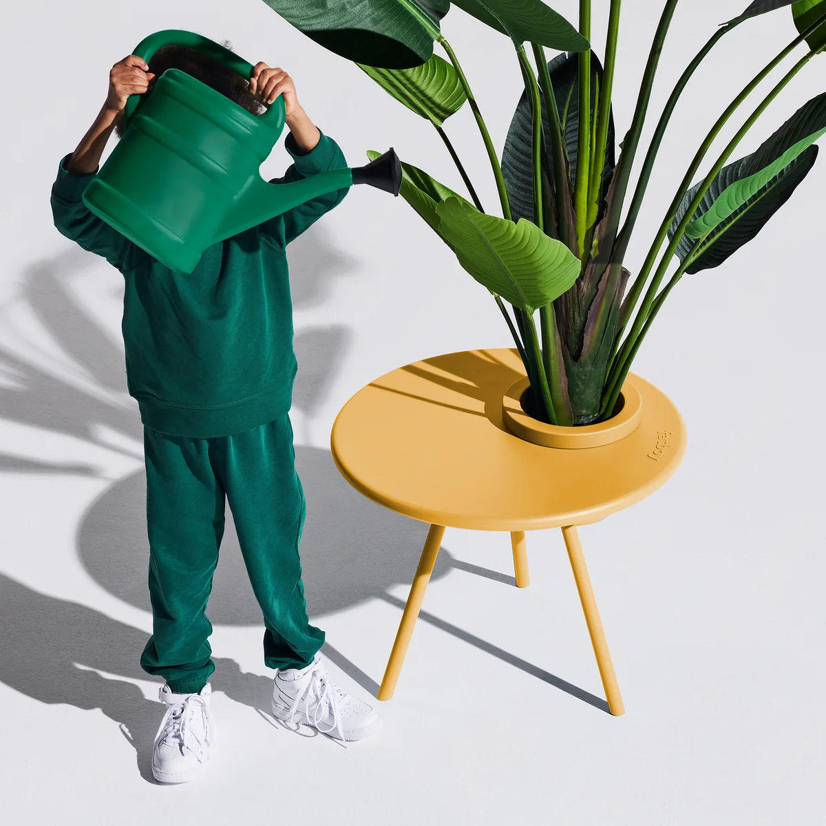 De bijzettafel is gemaakt van lineair polyethyleen met een lage dichtheid en biedt veel stabiliteit met zijn drie afgeschuinde poten. De bijzettafel is verkrijgbaar in verschillende kleuren.