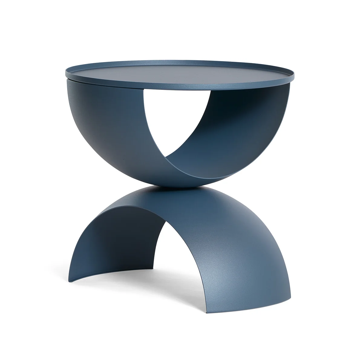 De Bow Bow Bijzettafel van de Nederlandse fabrikant Frederik Roijé illustreert de schoonheid van gebogen vormen. Bow Bow bestaat uit twee gebogen stalen platen. De bovenplaat van gepoedercoat staal is voorzien van een dienblad waarop boeken, tijdschriften, glazen, vazen en allerlei andere decoraties en lievelingsvoorwerpen optimaal kunnen worden geplaatst. Zo zijn ze altijd binnen handbereik. De moderne bijzettafel is verkrijgbaar in verschillende kleuren.