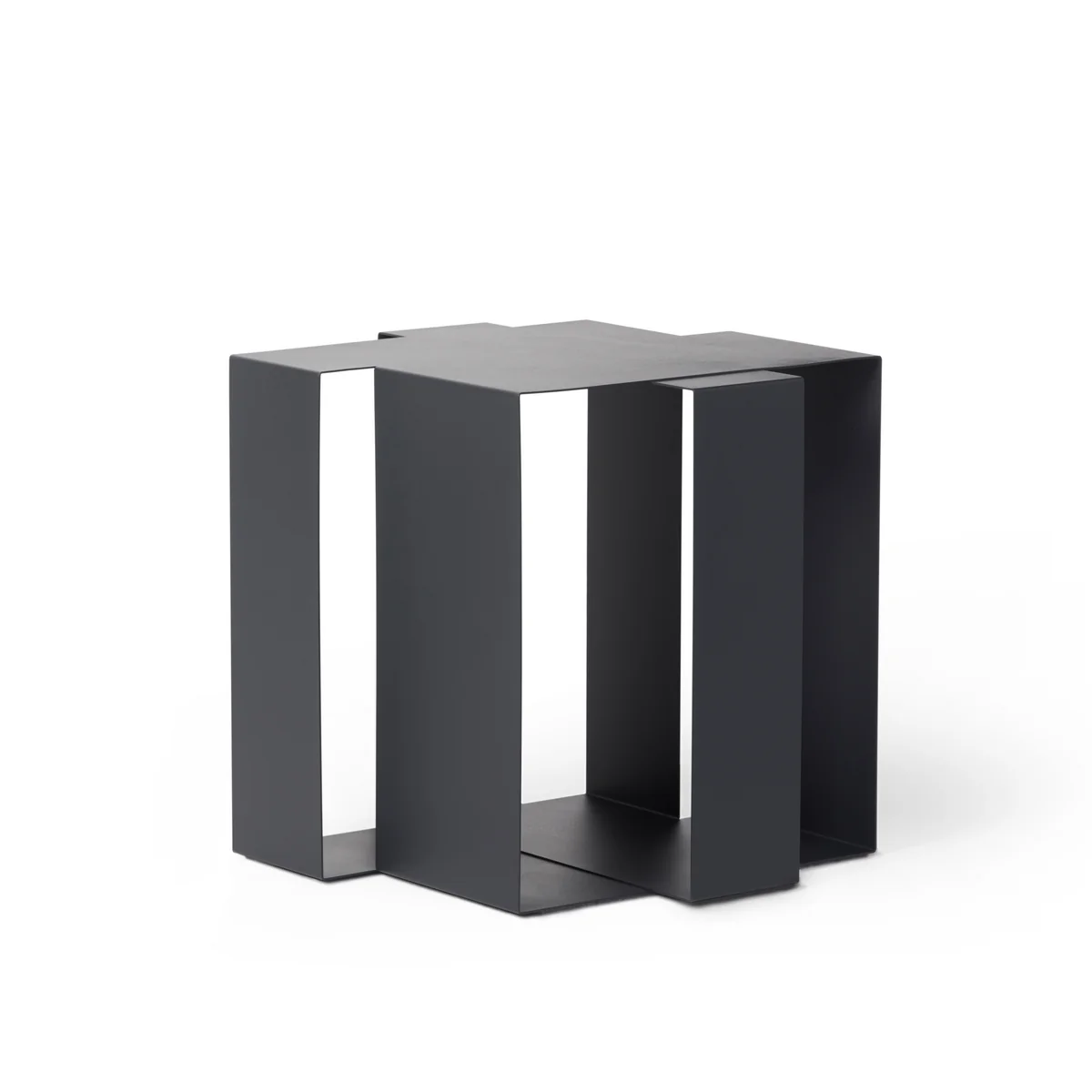 De bijzettafel is gemaakt van gepoedercoat staal en is verkrijgbaar in verschillende kleuren. Horizontaal of verticaal gepositioneerd is de Shifted Square decoratief en praktisch naast de bank in de woonkamer of naast het bed in de slaapkamer. Door de luchtige constructie kunt u ook tijdschriften, kranten, dekens en nog veel meer onder de plank opbergen.