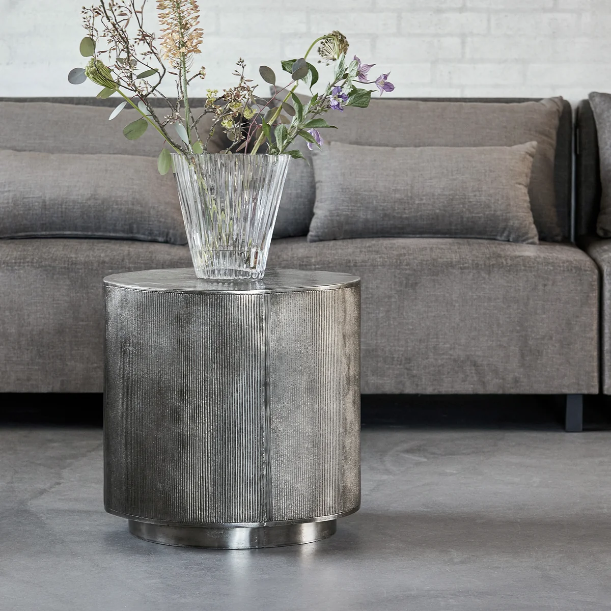 De Rota Bijzettafel van House Doctor brengt een vleugje elegantie in de woonkamer. De aluminium tafel heeft een afwerking gekregen die de woonkamer in een heerlijke warmte doet baden en een betoverend lichtspel oplevert wanneer de zonnestralen erop dansen. Het niet helemaal gladde oppervlak geeft de tafel een opvallend karakter.