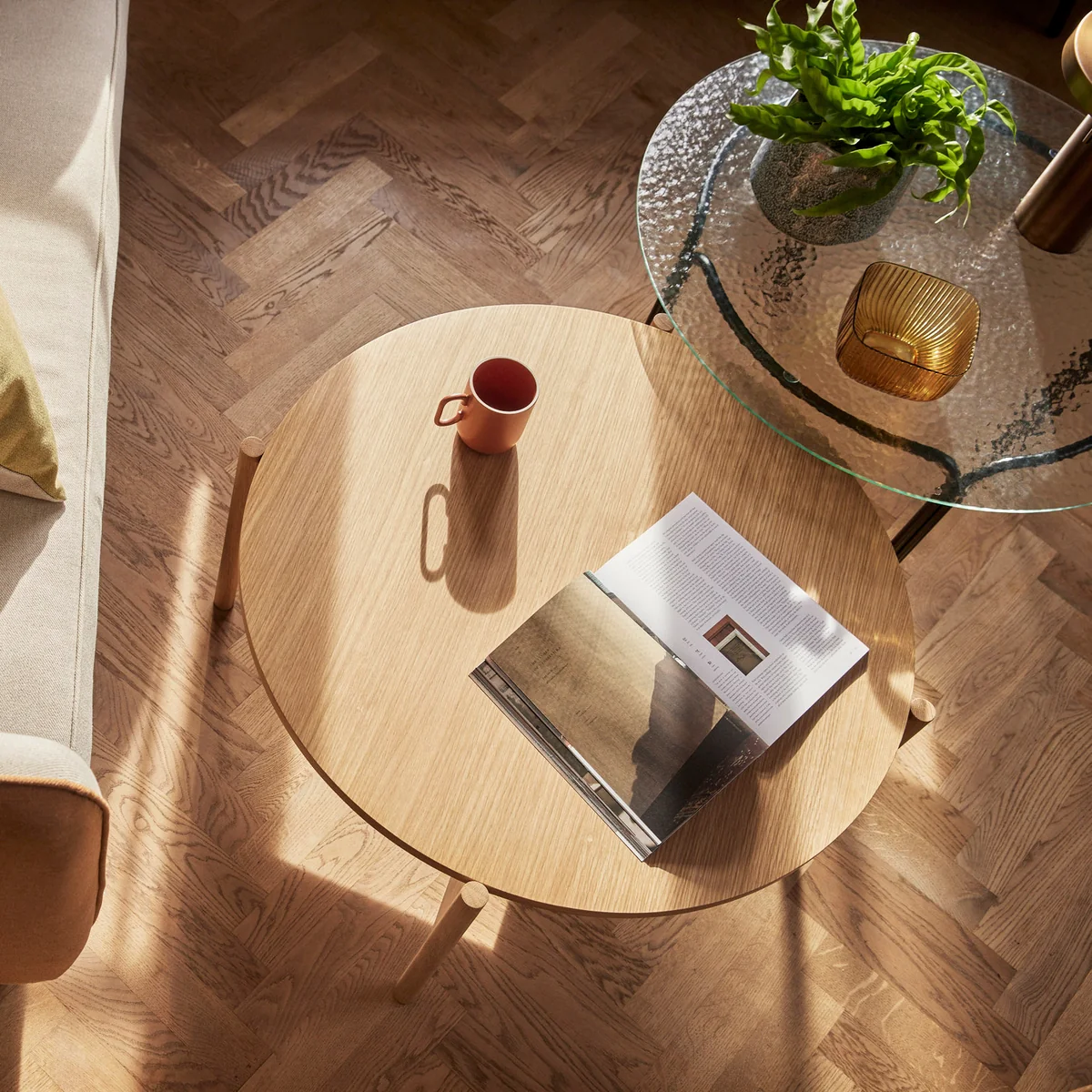 De Heritage bijzettafel van Hübsch Interior straalt klassieke elegantie uit. De zachte, afgeronde poten en het tafelblad harmoniëren met de heldere, rechte lijnen van de kruisvoet. De fijne nerf van het eikenhout valt niet alleen bijzonder op, maar geeft de woonkamer ook een natuurlijk en huiselijk tintje. Het eikenhout is ook zeer robuust en duurzaam. In combinatie met zachte en lichte kleuren krijgen de meubelstukken een tijdloos en warm effect.