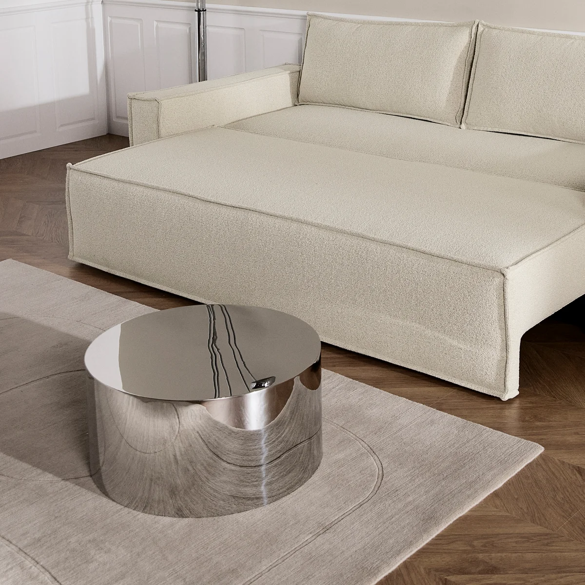 De Tin Drum bijzettafel van Innovation Living maakt indruk met zijn heldere, ronde silhouet dat rust en evenwicht uitstraalt. De doorlopende vorm zonder onderbrekingen belichaamt minimalistisch design, terwijl het glanzende oppervlak een modern accent toevoegt.