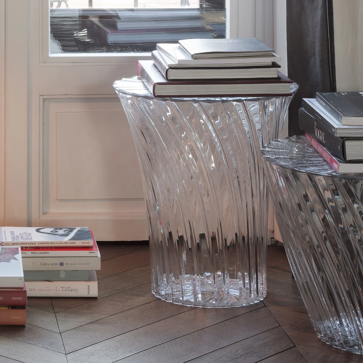 Sparkle van Tokujin Yoshioka voor Kartell is een kruk en een bijzettafel in één. Gemaakt van PMMA met speciale vouwdetails, overtuigt het met zijn Sparkle door zijn decoratieve vorm en zijn multifunctionaliteit. Als een kruk Sparkle is altijd klaar voor spontane bezoekers en als een bijzettafel wordt Sparkle naast het bed of de bank. Bijzonder praktisch Sparkle bij het afneembare deksel. Binnenin kunnen dekens, boeken, speelgoed en nog veel meer netjes en ruimtebesparend worden opgeborgen.