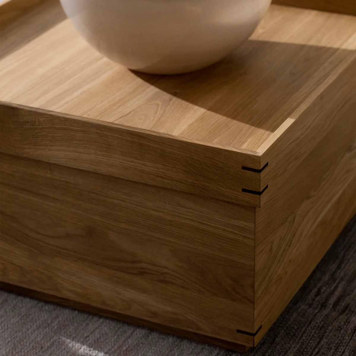 Deze opbergdozen, altijd fijn gesneden en versierd met ornamenten, staan model voor de Japanse Tray Tables van Kristina Dam Studio . Drie maten zijn beschikbaar: S, M & L. Niet alleen als tafel is de Japanese Tray Table kan niet alleen als tabel worden gebruikt, met de overlay voor de Japanese Tray Table het strakke en rechthoekige product kan - afhankelijk van de afmetingen - ook als bankje of zitje worden gebruikt. Alle vakken en tafels zijn handgemaakt en geolied in donker eiken.