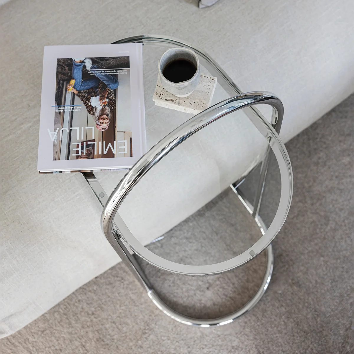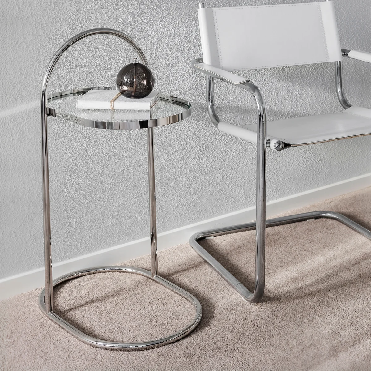 Dankzij het doordachte ontwerp kan de bijzettafel flexibel in de kamer worden geplaatst en worden gebruikt als plank voor drankjes, boeken of decoratieve voorwerpen. Tegelijkertijd zorgt het sculpturale ontwerp voor een subtiel designaccent dat harmonieus past bij verschillende inrichtingsconcepten.
