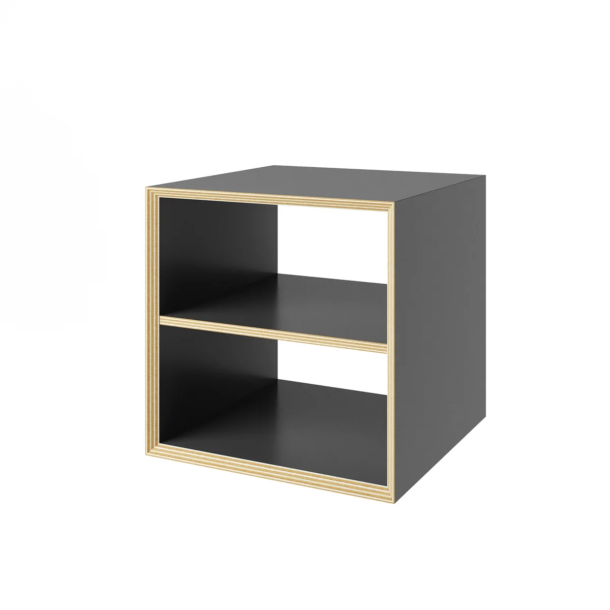 De Vertiko Dice is een veelzijdige, draaibare kubus die maximale flexibiliteit biedt. Met zijn compacte afmetingen van 45 x 45 x 45 cm is de module geschikt als salontafel, bijzettafel, ladekast, krukje of nachtkastje. De permanent geïntegreerde tussenplank verdeelt het opbergoppervlak praktisch, afhankelijk van of de kubus horizontaal of verticaal wordt gebruikt. Vertiko Dice kan op zichzelf staan of in groepen worden gecombineerd en is verkrijgbaar in zwart, wit of antraciet. Viltglijders beschermen de vloer en zijn inbegrepen.