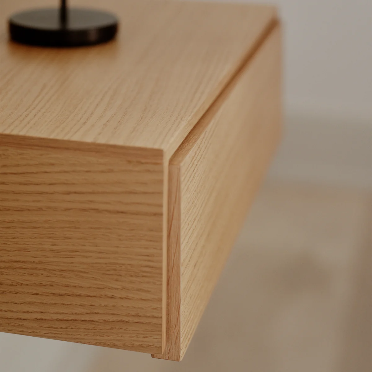 New Works Tana Het nachtkastje voor aan de muur is een elegante en ruimtebesparende oplossing voor moderne slaapkamers. Met zijn minimalistische ontwerp en functionele constructie biedt dit nachtkastje niet alleen een praktisch opbergoppervlak, maar is het ook een stijlvol element voor elke slaapkamer.