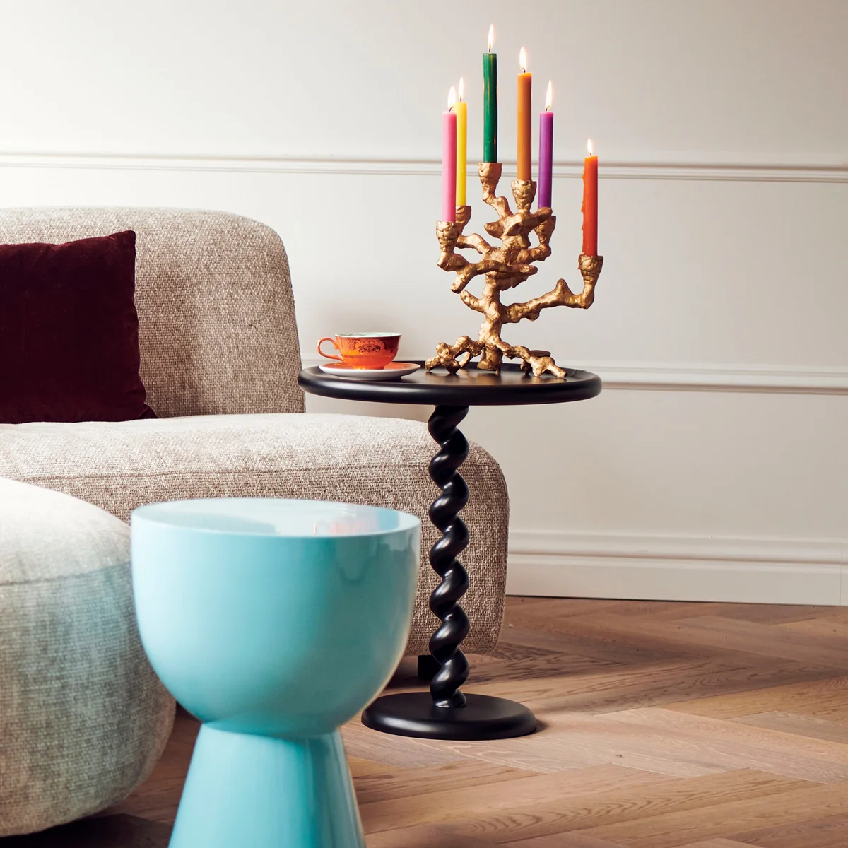 De Twister bijzettafel van Pols Potten is een stijlvolle en eigentijdse bijzettafel met een gedraaid metalen onderstel dat bijdraagt aan een visueel interessante en dynamische look. De tafel presenteert een glad en stijlvol oppervlak voor het plaatsen van drankjes, boeken of decoratieve voorwerpen naar keuze. De combinatie van de afzonderlijke elementen creëert een opvallend ontwerp dat de esthetiek van de woonkamer, slaapkamer of kantoor verbetert.