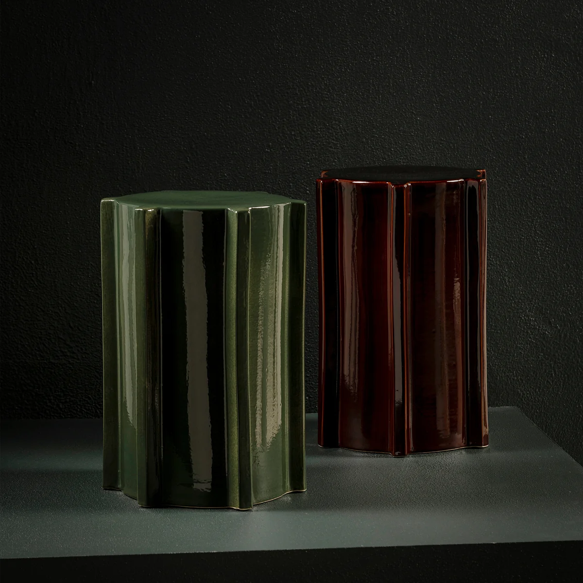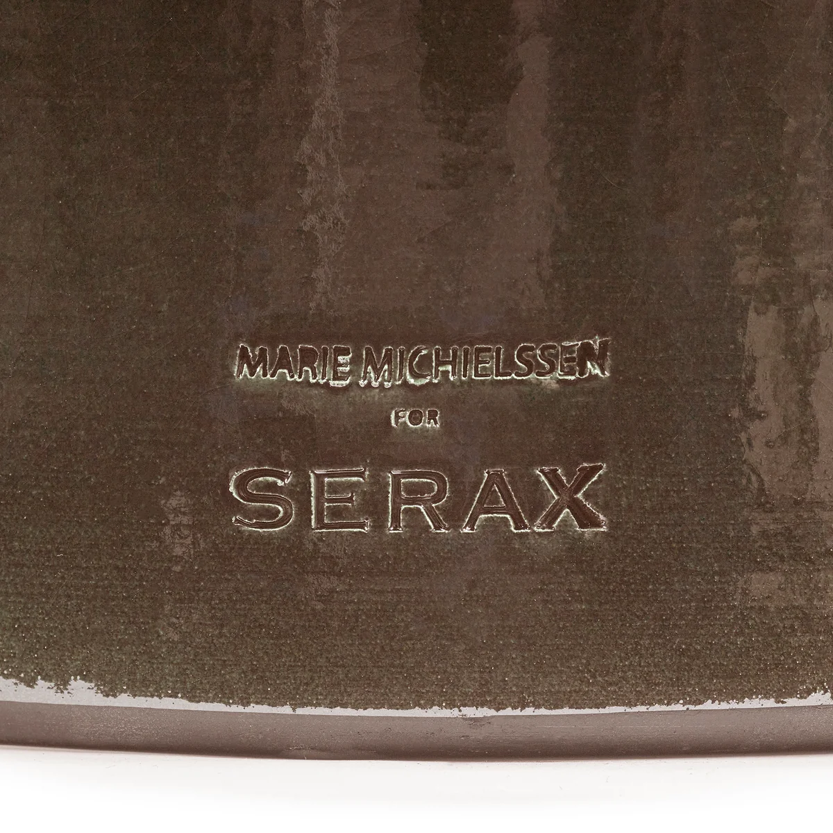 Serax De bijzettafel Pawn van, ontworpen door Marie Michielssen, combineert ongebruikelijke vormen met een harmonieus ontwerp. Gemaakt van steengoed en afgewerkt met een glanzend glazuur op het bovenblad, combineert de tafel esthetische verfijning met functionaliteit. Het glanzende oppervlak vormt niet alleen een mooi visueel contrast met de ruwe textuur van het steengoed, maar dient ook als praktisch opbergoppervlak.