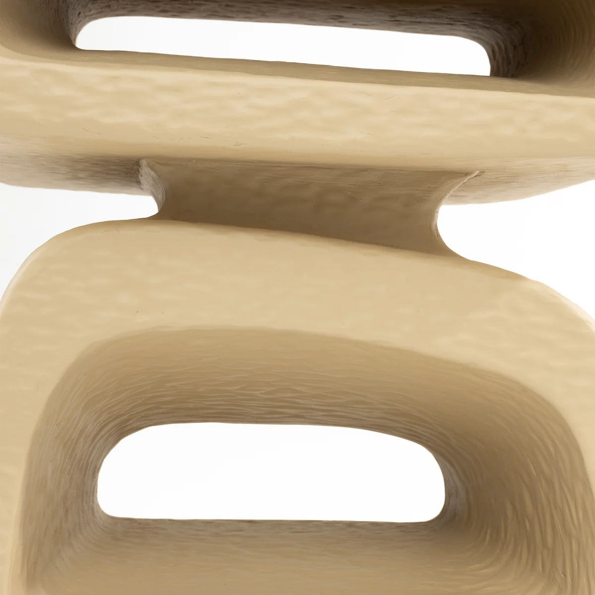 De Eddy bijzettafel van Zuiver is een opvallend designobject met een handgemaakte look. Deze tafel is gemaakt van robuuste hars en afgewerkt in een warme, aardachtige beige kleur, waardoor natuurlijkheid en moderne designtaal met elkaar in harmonie zijn. De opvallende, onregelmatige structuur van het oppervlak - gecreëerd door het speciale materiaal - geeft de tafel een unieke textuur met tactiele aantrekkingskracht.