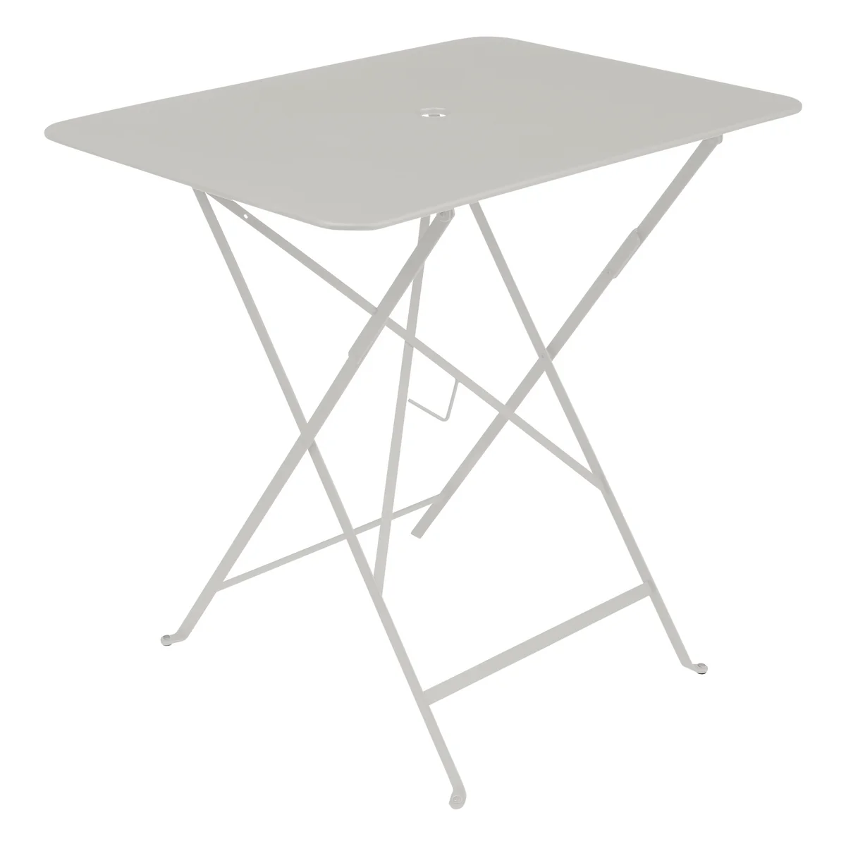 De Fermob tuintafel met een afmeting van 77 x 57 cm heeft in het midden van het tafelblad een kleine uitsparing die dient als praktische parasolhouder. Parasols met een standaard van max Ø 41 mm kunnen in het tafelblad worden ingebouwd.
