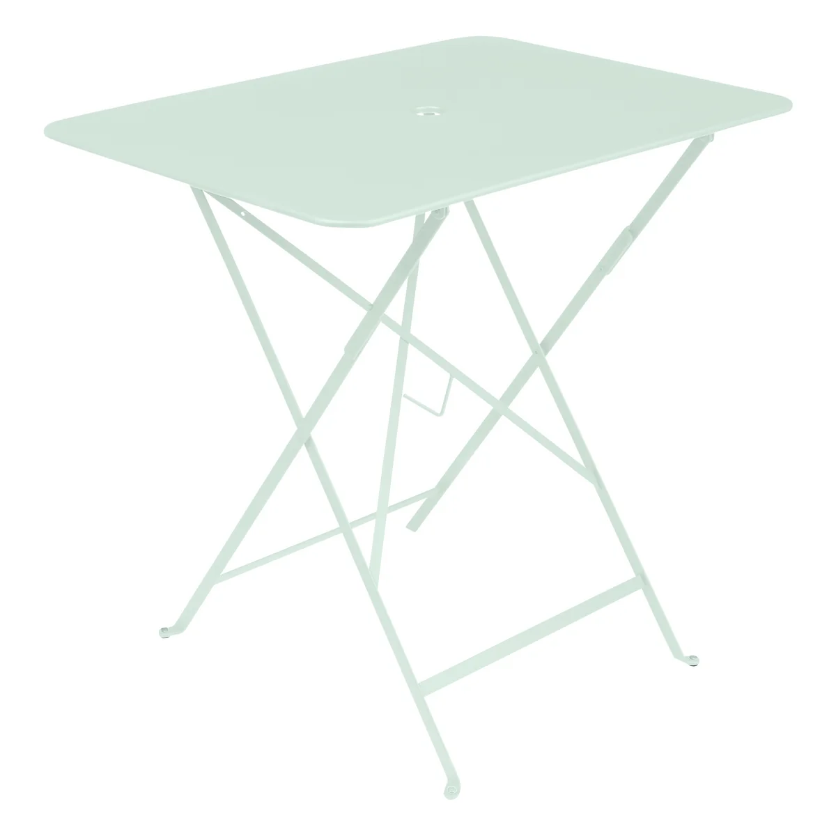 De Fermob tuintafel met een afmeting van 77 x 57 cm heeft in het midden van het tafelblad een kleine uitsparing die dient als praktische parasolhouder. Parasols met een standaard van max Ø 41 mm kunnen in het tafelblad worden ingebouwd.