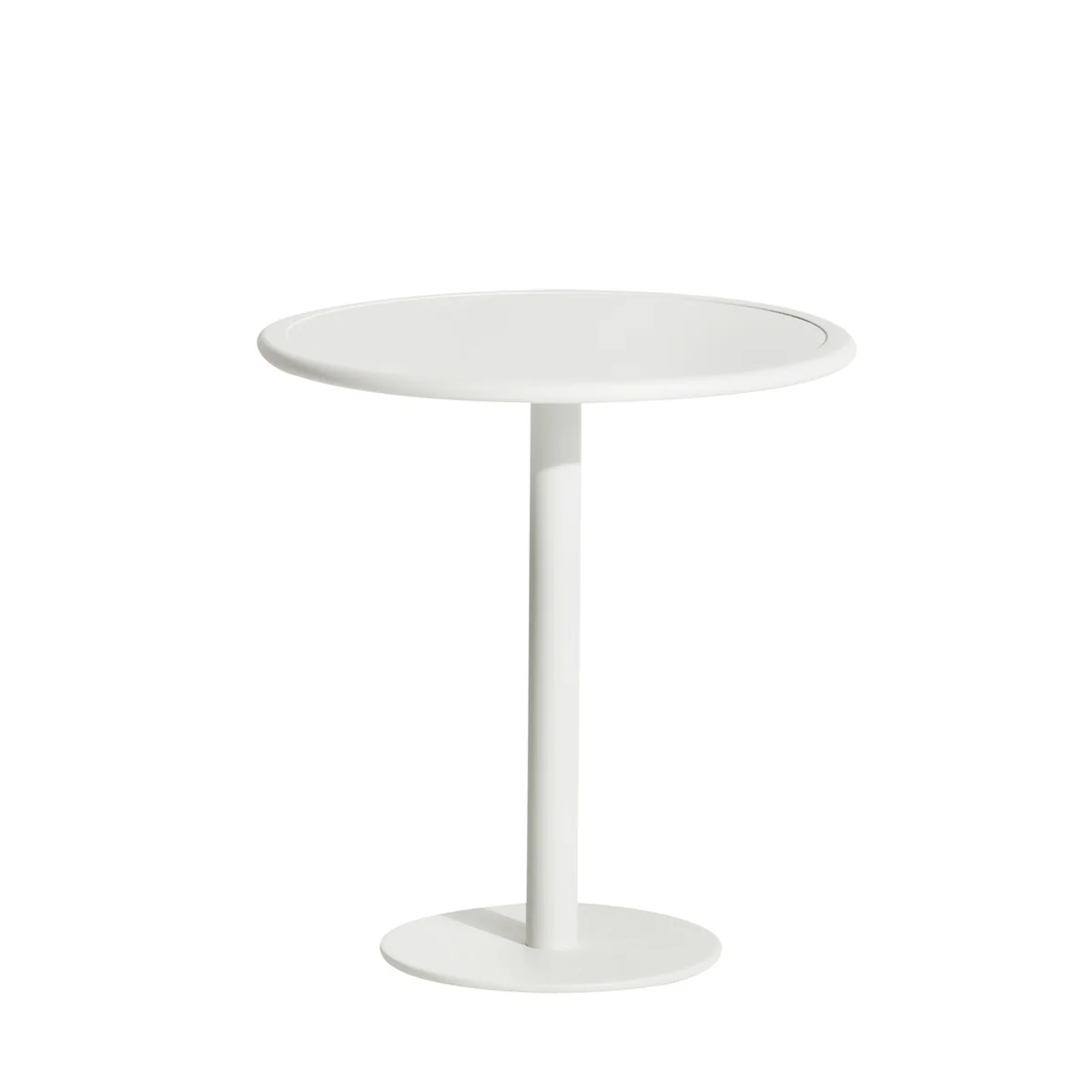 De Week-End bistrotafel Outdoor van Petite Friture heeft het uiterlijk van een klassieke bistrotafel, maar is ontworpen met het oog op nog meer functionaliteit. Hij is gemaakt van aluminium en afgewerkt met een UV-bestendige epoxycoating die bestand is tegen zowel water als verblekende UV-stralen. Bovendien heeft de ronde tafel een lichte rand aan het tafelblad zodat glazen en borden er niet af kunnen glijden.