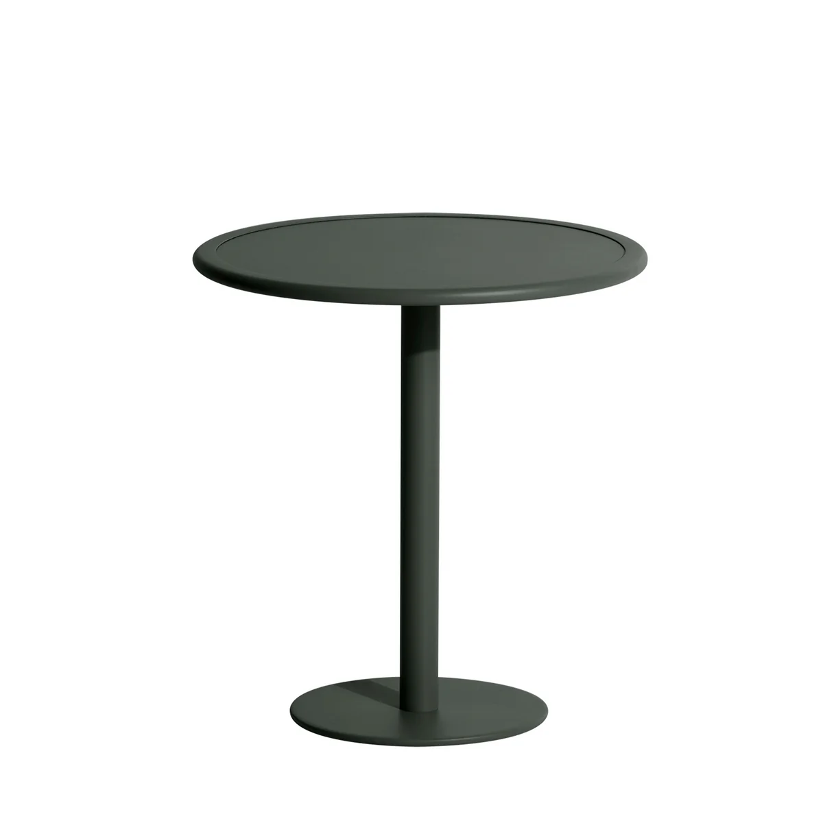De Week-End bistrotafel Outdoor van Petite Friture heeft het uiterlijk van een klassieke bistrotafel, maar is ontworpen met het oog op nog meer functionaliteit. Hij is gemaakt van aluminium en afgewerkt met een UV-bestendige epoxycoating die bestand is tegen zowel water als verblekende UV-stralen. Bovendien heeft de ronde tafel een lichte rand aan het tafelblad zodat glazen en borden er niet af kunnen glijden.