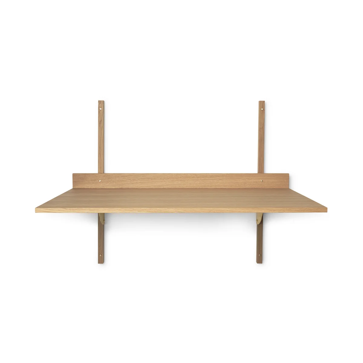 De Sector Het bureau van Ferm Living kenmerkt zich door zijn robuuste eenvoud en de klassieke combinatie van hout en messing. Het kan worden gebruikt als een onafhankelijk oppervlak of worden gecombineerd met de Sector Wandplanken kunnen op alle mogelijke manieren worden gecombineerd om een geïntegreerd en samenhangend werkgebied te creëren. Een korte rand aan het einde van de tafel vormt een klein, smal oppervlak dat ideaal is voor handgeschreven notities of een favoriete foto.