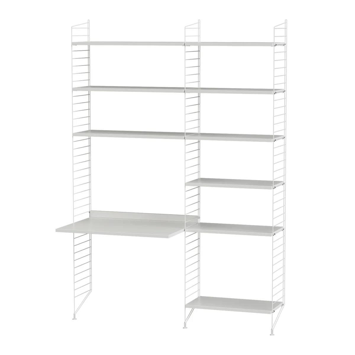De werkplekcombinatie van String is de ideale oplossing voor een functionele en stijlvolle werkplek. Met een combinatie van planken, lades en een stevig werkblad biedt het voldoende opbergruimte en ruimte voor je dagelijkse werk. Het minimalistische ontwerp en de iconische String -esthetiek maken het een moderne toevoeging aan een thuiskantoor, studeerkamer of creatieve ruimte.