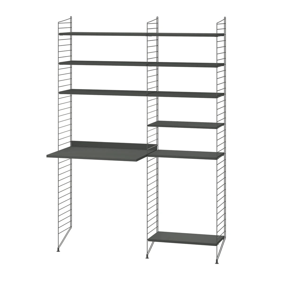 De werkplekcombinatie van String is de ideale oplossing voor een functionele en stijlvolle werkplek. Met een combinatie van planken, lades en een stevig werkblad biedt het voldoende opbergruimte en ruimte voor je dagelijkse werk. Het minimalistische ontwerp en de iconische String -esthetiek maken het een moderne toevoeging aan een thuiskantoor, studeerkamer of creatieve ruimte.