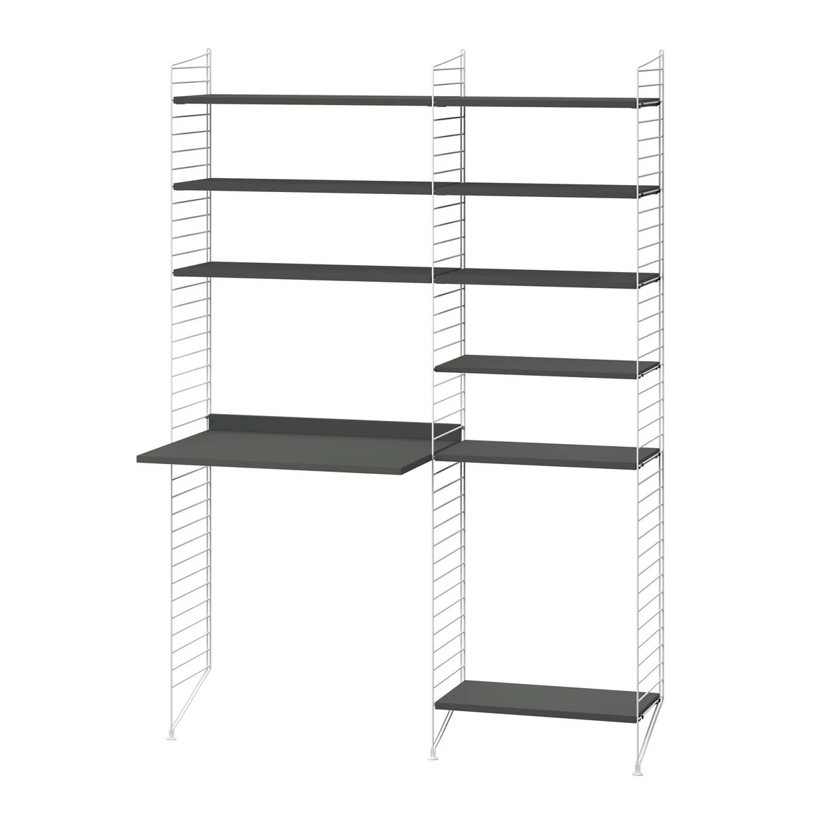 De werkplekcombinatie van String is de ideale oplossing voor een functionele en stijlvolle werkplek. Met een combinatie van planken, lades en een stevig werkblad biedt het voldoende opbergruimte en ruimte voor je dagelijkse werk. Het minimalistische ontwerp en de iconische String -esthetiek maken het een moderne toevoeging aan een thuiskantoor, studeerkamer of creatieve ruimte.