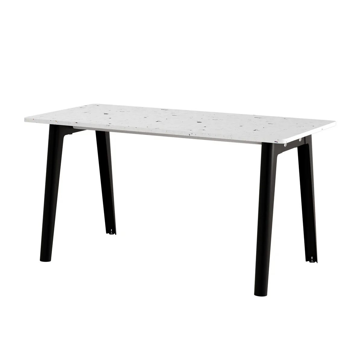 Het bureau biedt niet alleen een royaal werkoppervlak, maar creëert ook een gestructureerde en opgeruimde sfeer. Het gebruik van gerecycled plastic maakt het bijzonder milieuvriendelijk zonder afbreuk te doen aan kwaliteit en duurzaamheid. De eenvoudige maar stevige metalen poten geven de tafel een elegante lichtheid waardoor het een echte blikvanger is in elke kamer.