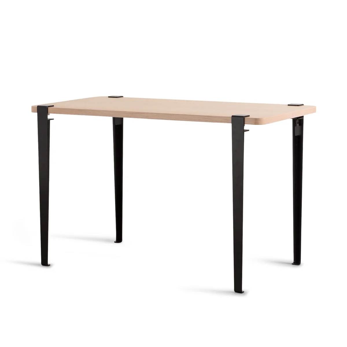 Het blad van het Noma bureau is gemaakt van eiken fineer, terwijl de vier poten zijn gemaakt van gepoedercoat staal en verkrijgbaar zijn in verschillende kleuren.