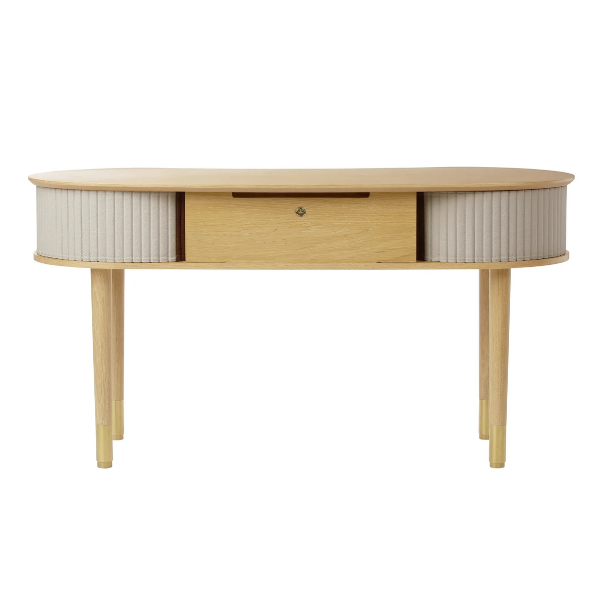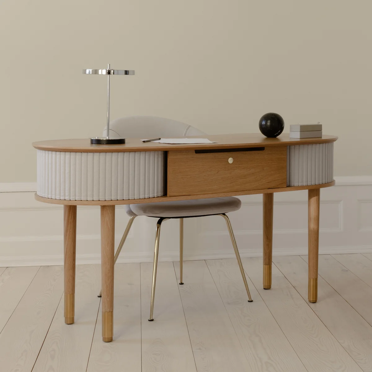 Het Audacious Umage bureau van belichaamt een harmonieus samenspel van functionaliteit en esthetisch ontwerp. Met zijn strakke lijnen en minimalistische benadering past dit bureau naadloos in elke moderne werkomgeving. Het royale tafelblad biedt voldoende ruimte voor creatief en georganiseerd werken. De geïntegreerde lade biedt extra opbergruimte en helpt het werkgebied opgeruimd te houden. Gemaakt van hoogwaardige materialen zoals eikenhout en staal, maakt het bureau niet alleen indruk met zijn Audacious Het bureau overtuigt niet alleen door zijn visuele elegantie, maar ook door zijn duurzaamheid en robuustheid. Een inspirerend meubelstuk voor productieve dagen achter het bureau.