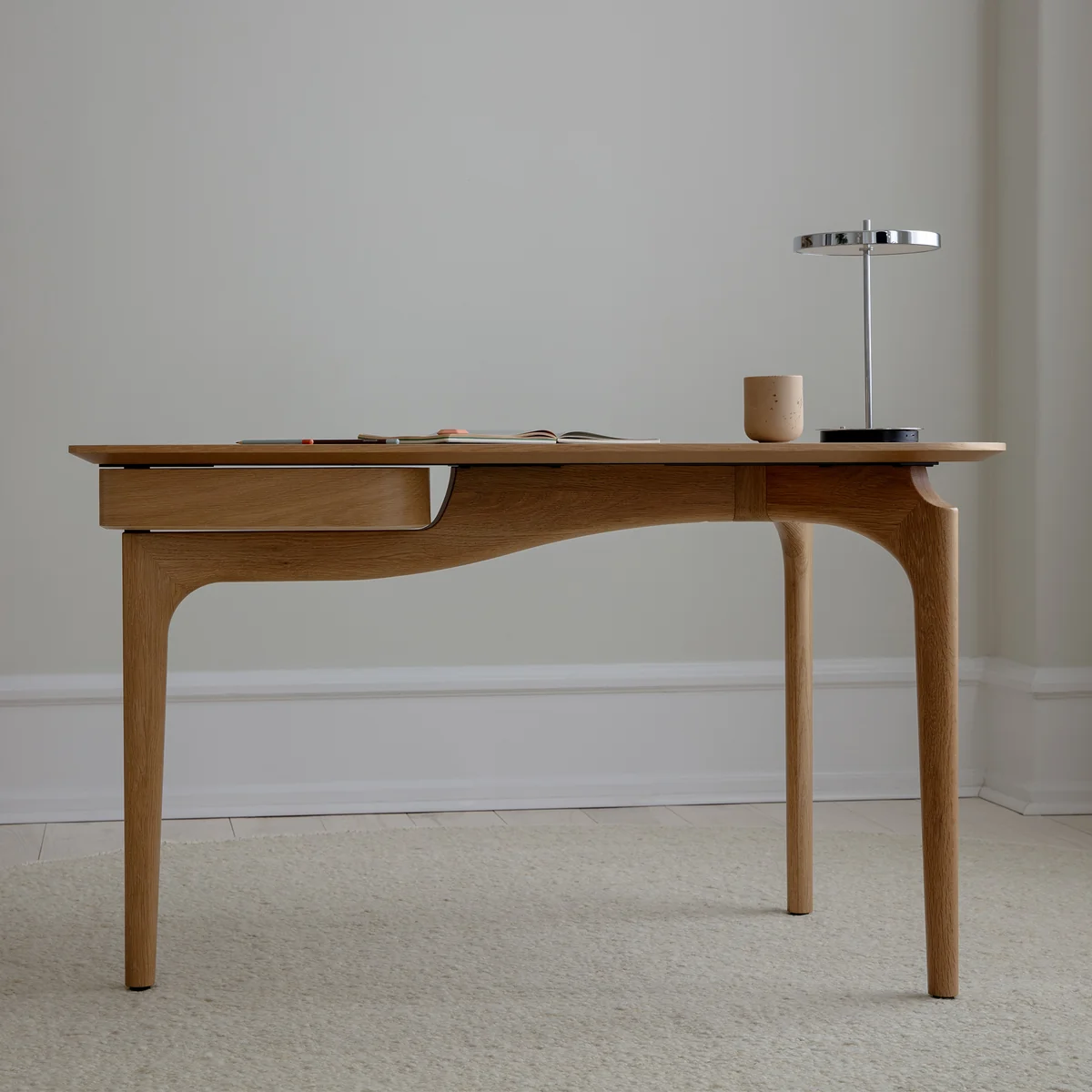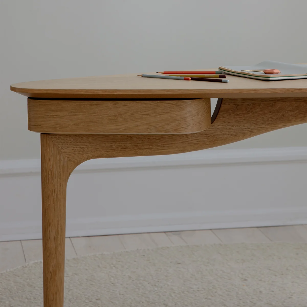 Bureau met zachte lijnen in eiken