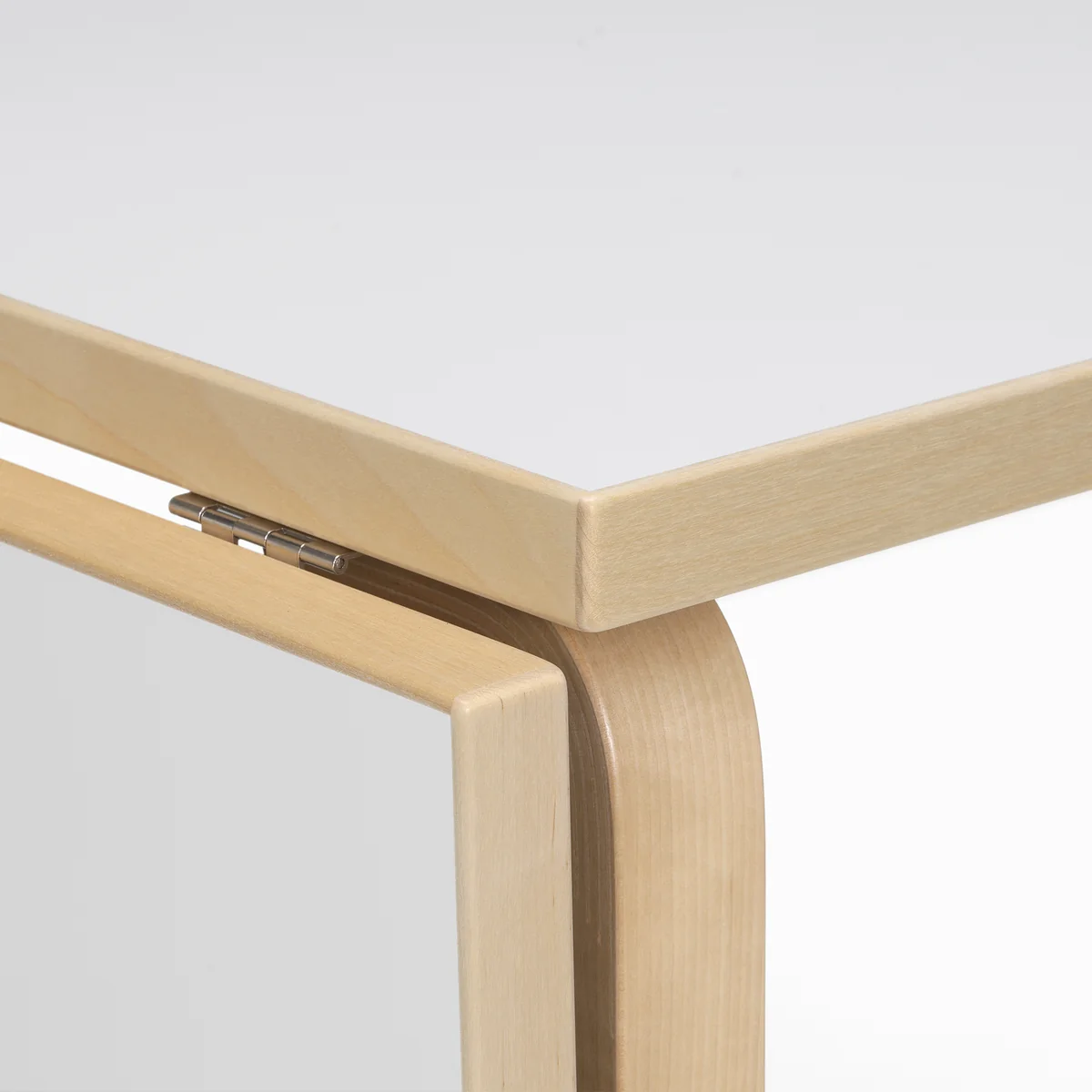 Artek De Aalto DL81C inklapbare eettafel van, ontworpen door Alvar Aalto in 1933, is een compacte en veelzijdige houten tafel die eenvoudig kan worden uitgeklapt om extra ruimte te creëren wanneer dat nodig is. Deze tafel is daarom ideaal voor kleine eet- of werkruimtes. De poten en randen van de tafel zijn gemaakt van massief berkenhout, terwijl het inklapbare tafelblad is bekleed met slijtvast en gemakkelijk schoon te maken hogedruklaminaat, waardoor het bijzonder geschikt is als eettafel. Gemaakt in Finland.
