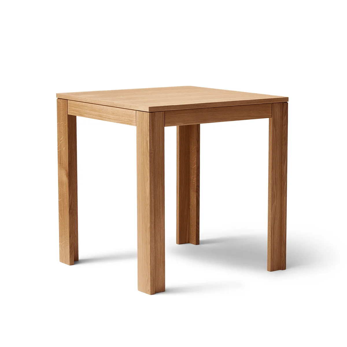 De Element tafel combineert minimalistisch design met precisie vakmanschap. Met zijn vierkante formaat van 70×70 cm en zijn heldere lijnen is de tafel ideaal voor kleinere eetruimtes, vergaderzalen of eetkeukens.