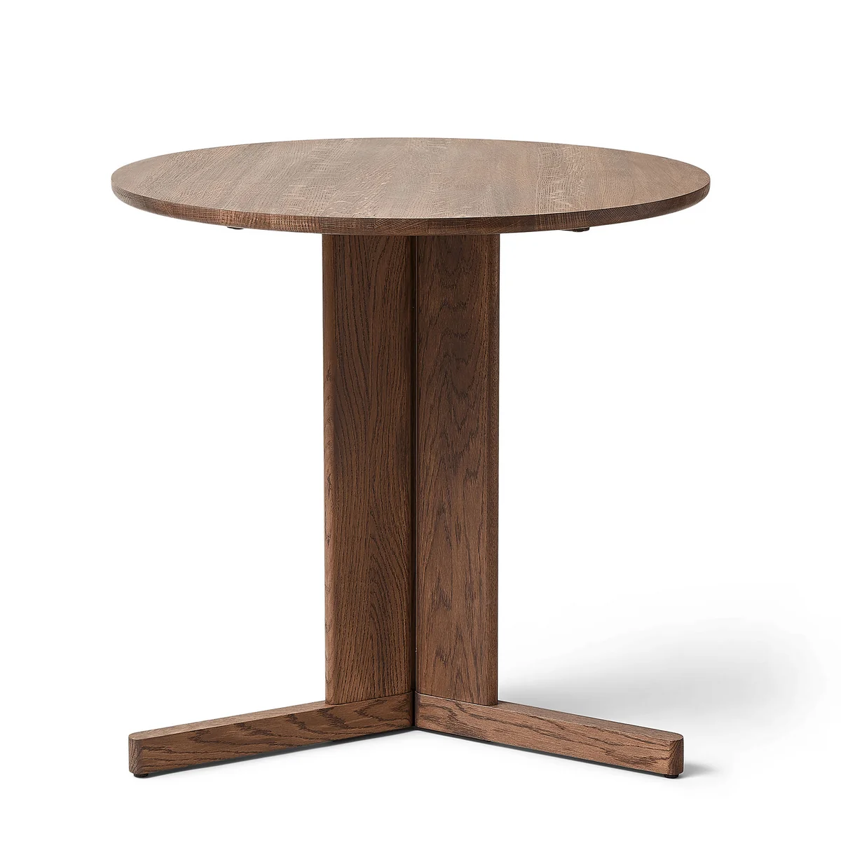 De Trefoil tafel van Form & Refine is een unieke ronde tafel van hout. Drie massieve pootelementen komen samen onder het tafelblad en creëren een smaakvol contrast tussen lichtheid en dichtheid. Dit visueel complexe ontwerp wordt aangevuld met een heerlijk Scandinavische look. De Trefoil tafel is geschikt als eettafel, in de woonkamer, keuken of kantoor. Bijzonder slim: door het ruimtebesparende ontwerp heeft iedereen aan tafel voldoende beenruimte. Het ontwerp is afkomstig van het Deense ontwerpersduo Herman Studio.