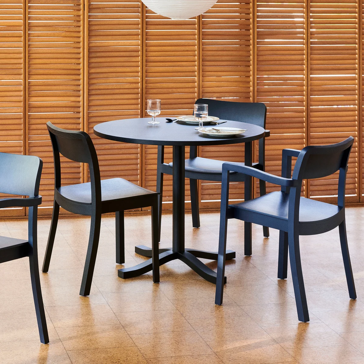 De Pastis eettafel van de Franse ontwerper Julien Renault voor HAY inspireert door zijn authenticiteit en hoge niveau van vakmanschap. Pastis creëert een uiterst elegante esthetiek met zijn ronde tafelblad en vier gebogen poten. De veelzijdige tafel is perfect voor de eetkamer of openbare gelegenheden zoals cafés. Het voegt warmte en veelzijdigheid toe aan het interieur. De Pastis eettafel is verkrijgbaar in verschillende houtsoorten en kleuren met een gefineerd tafelblad.