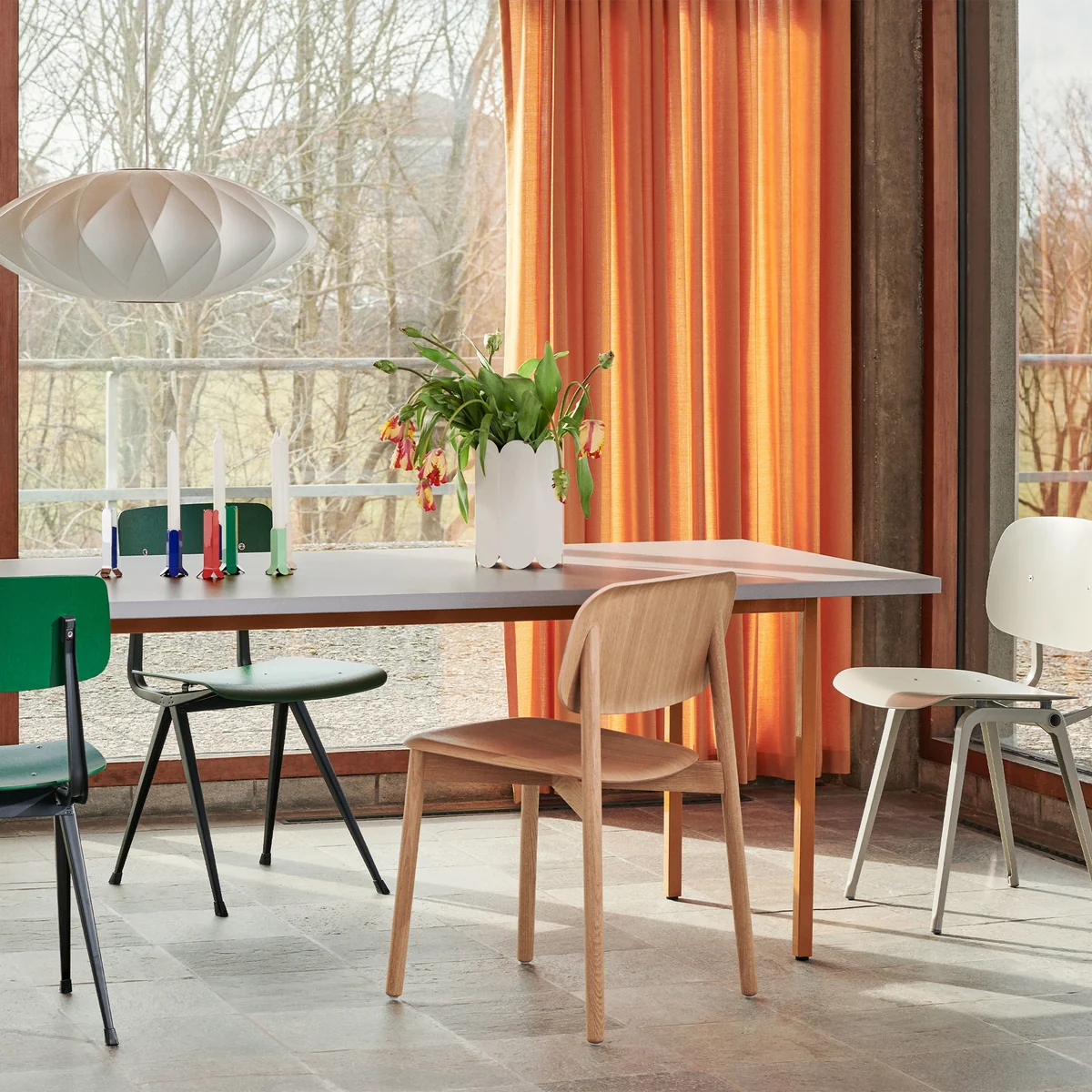 De Two-Colour eettafel van HAY is verkrijgbaar in verschillende uitvoeringen. Elk heeft zijn eigen persoonlijkheid en beantwoordt zo aan uiteenlopende esthetische behoeften. De eettafels passen in verschillende woonstijlen en bieden artistieke vrijheid bij de inrichting van de leefruimte.