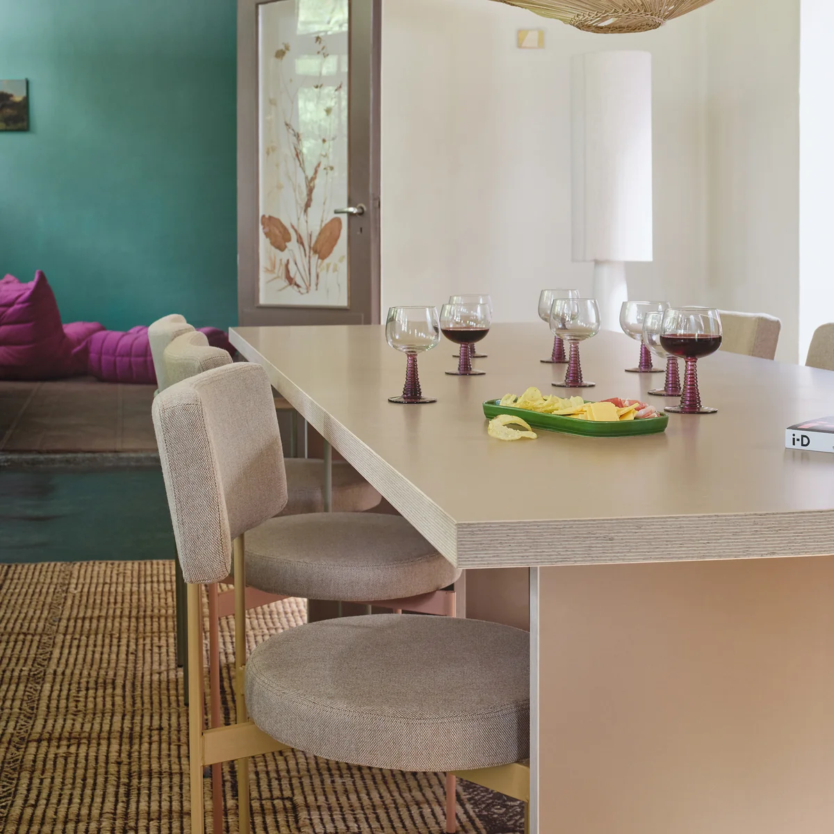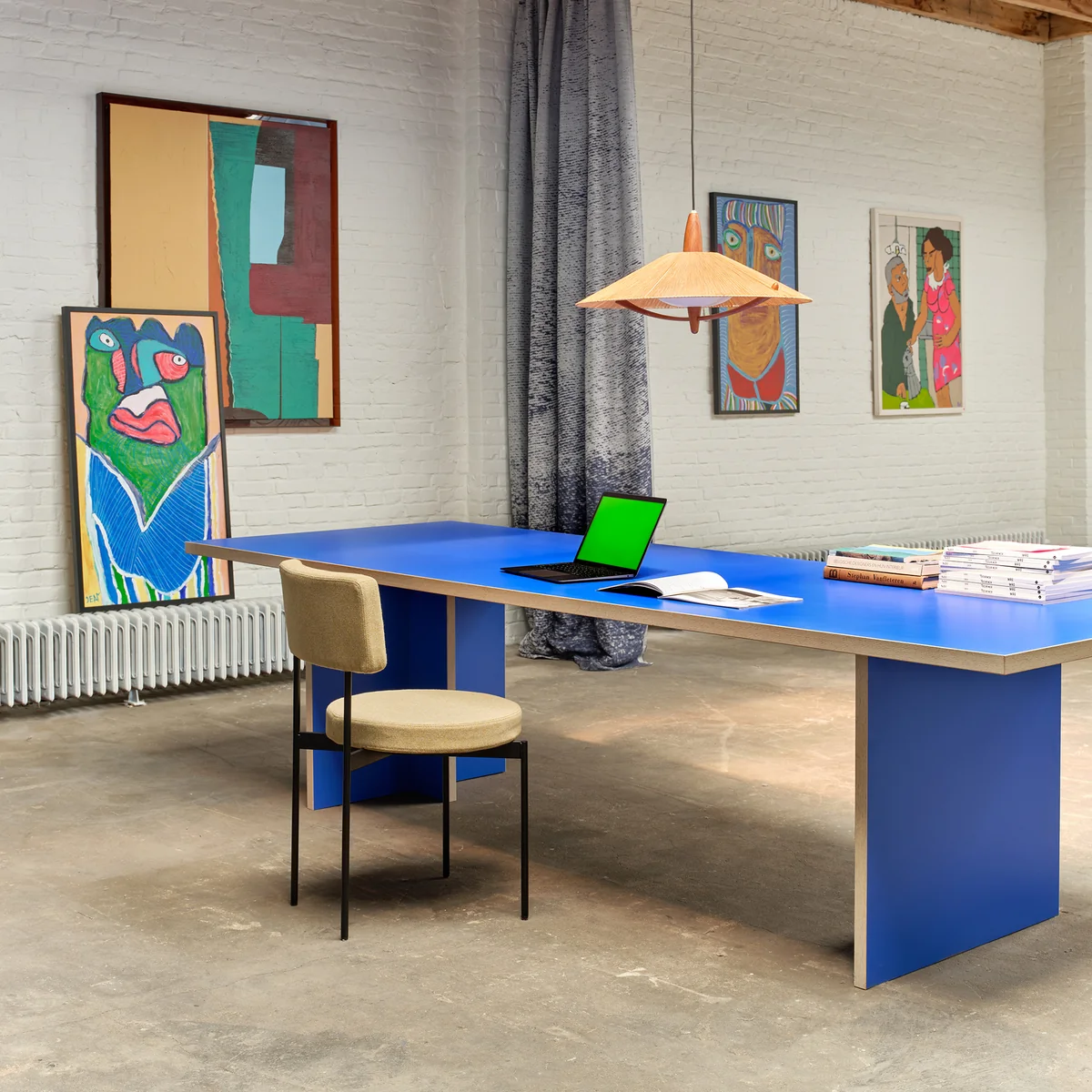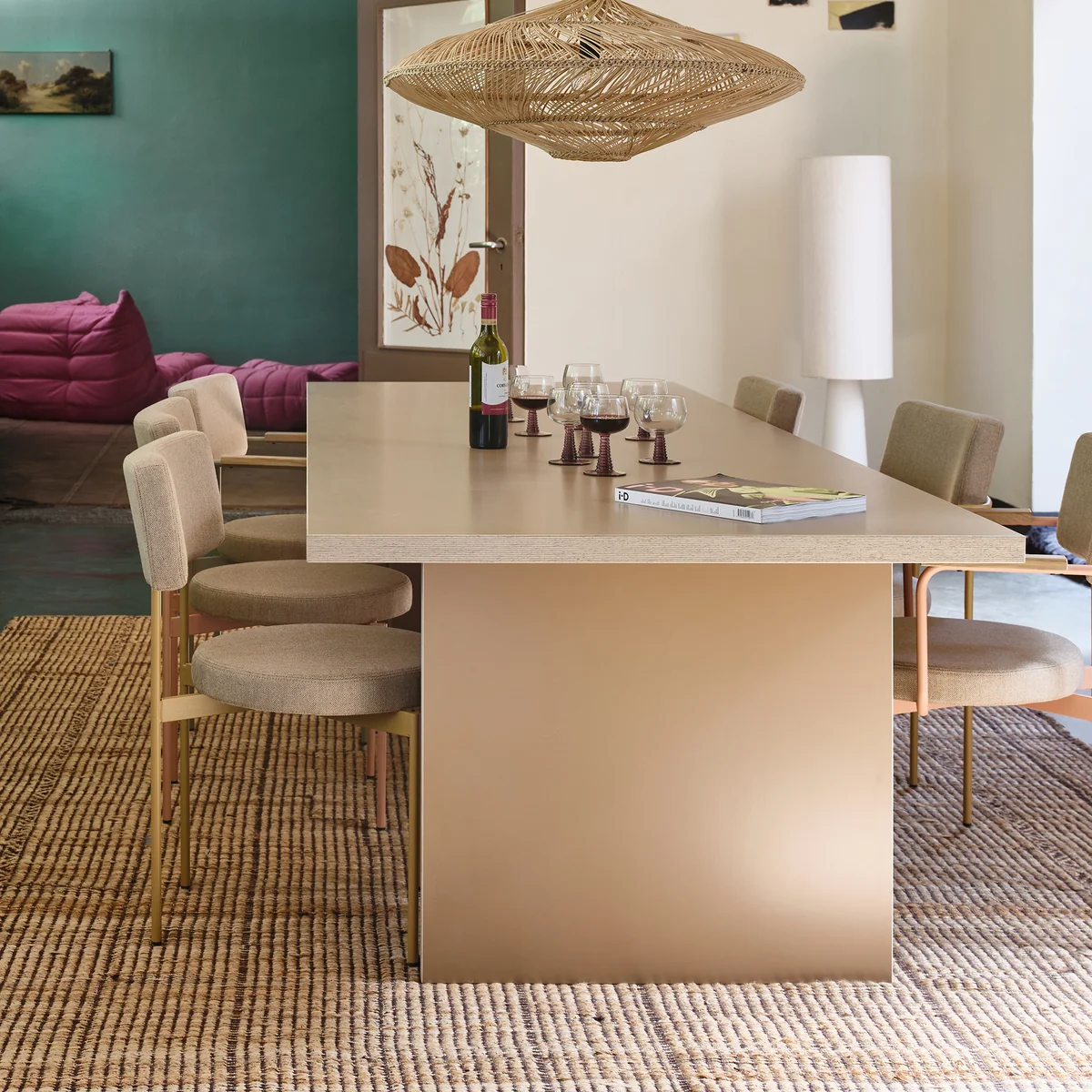 De eettafel van het Nederlandse bedrijf HKliving brengt het hele gezin samen. Hij is verkrijgbaar in verschillende maten en kleuren. Het tijdloze designobject is gemaakt van 70% Eorolight, 22% MDF, 7% HPL en 1% metaal.