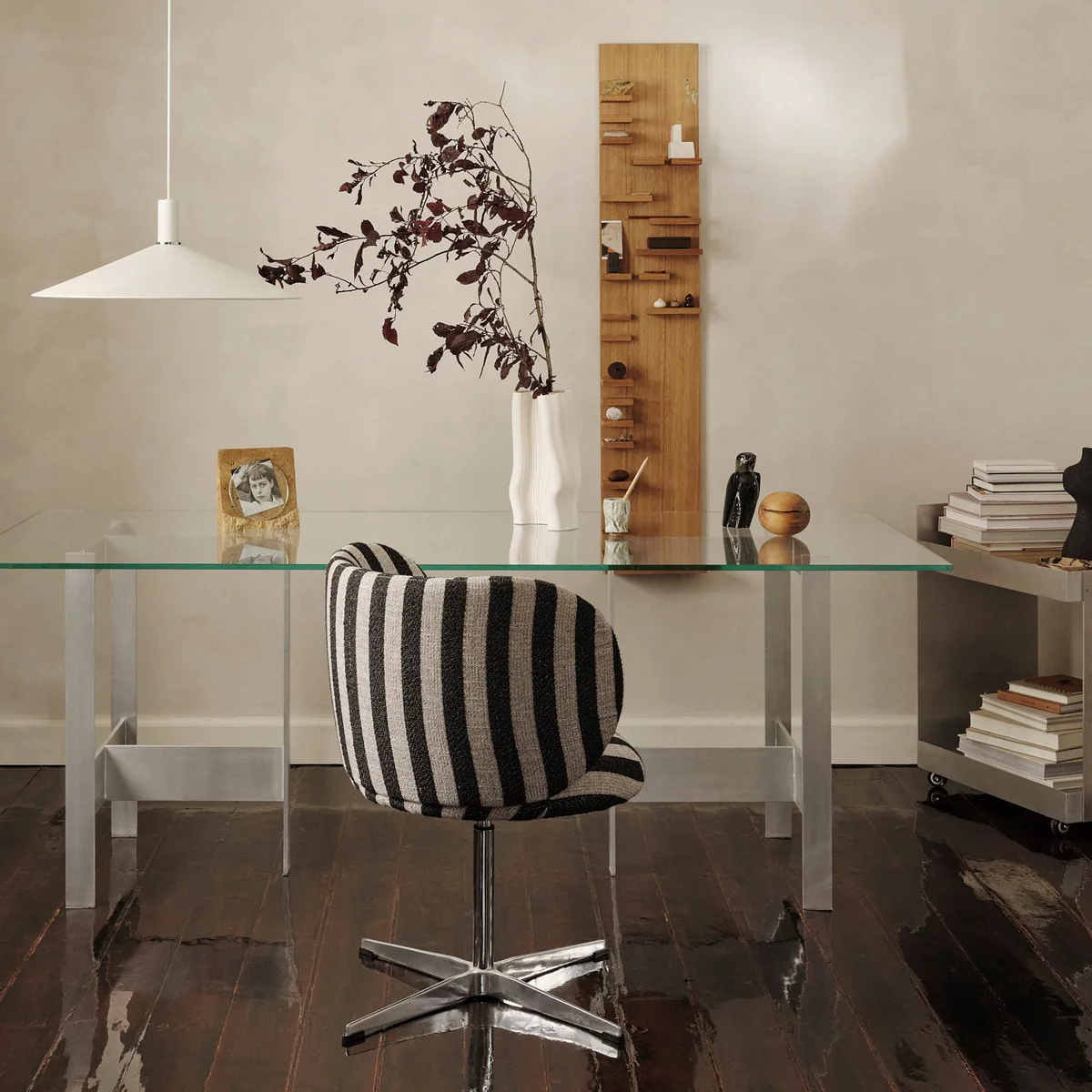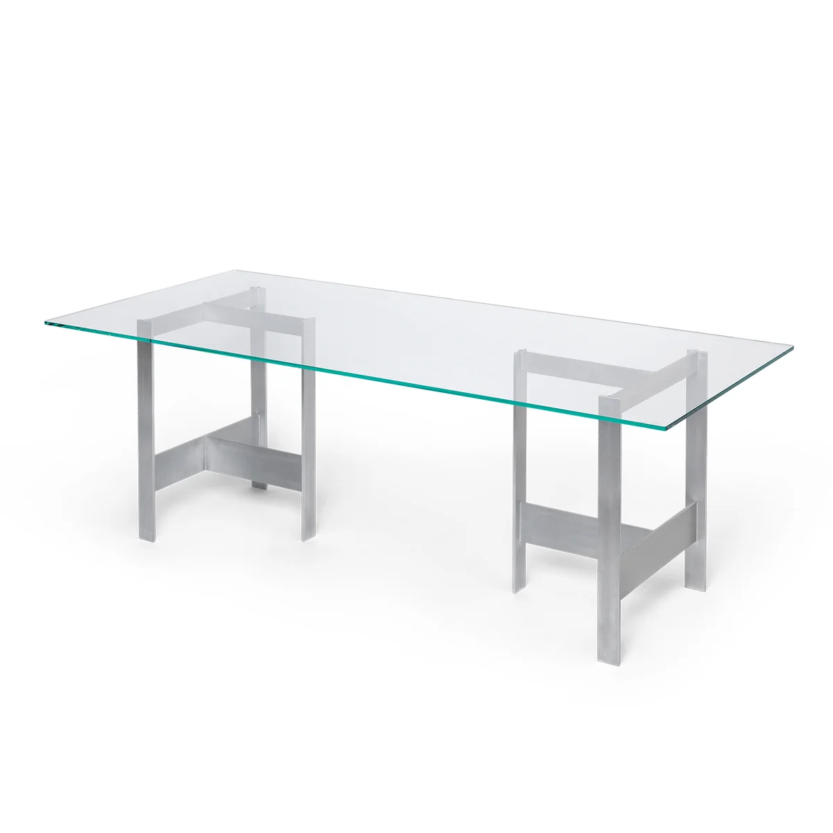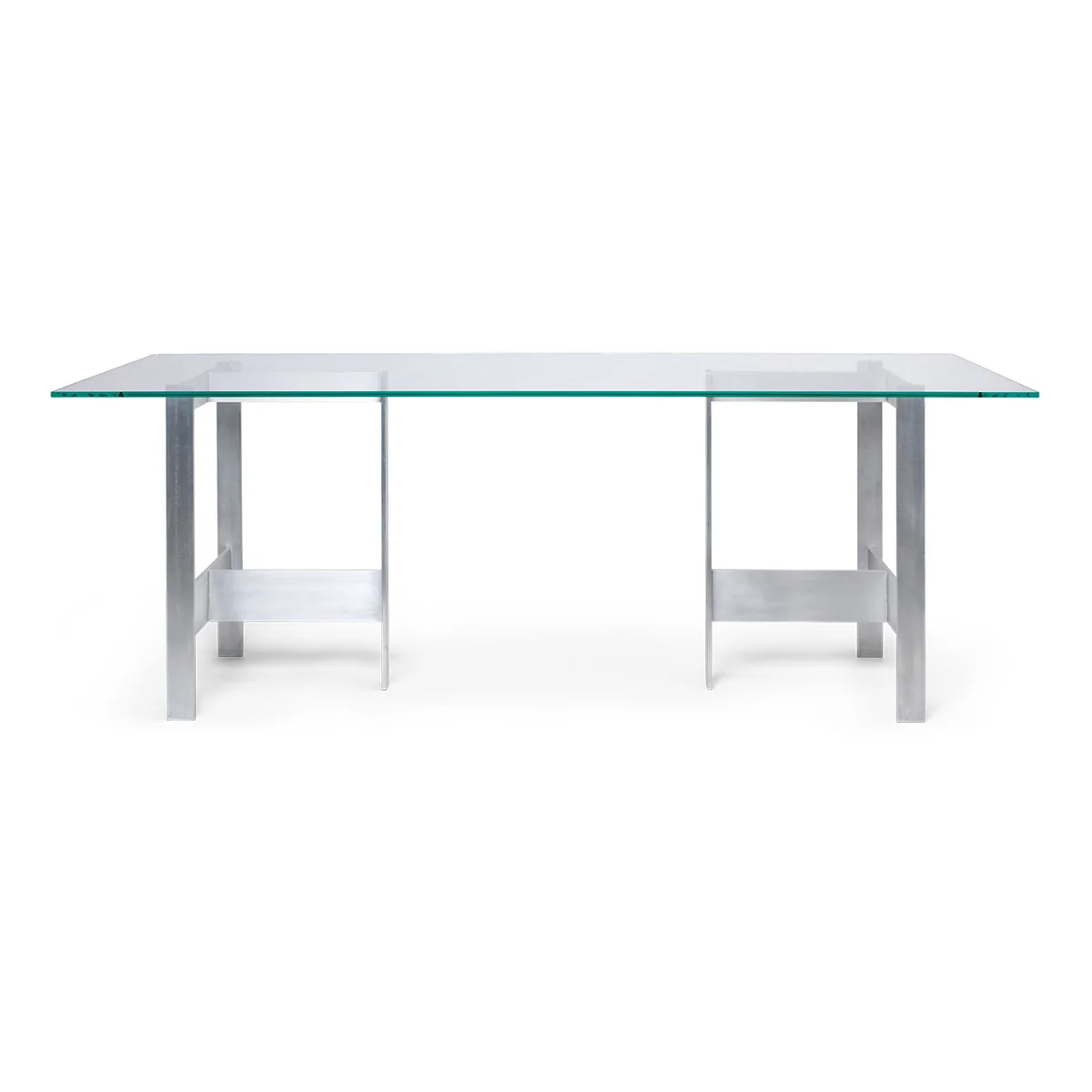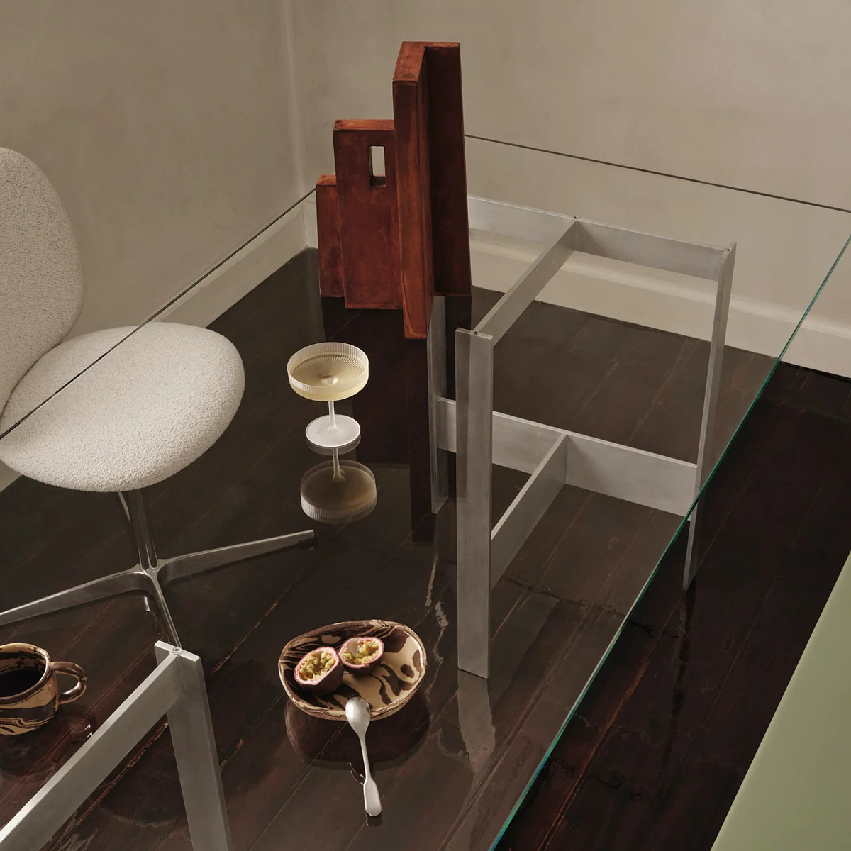 De Lager eettafel van Ferm Living combineert modern design met praktische functionaliteit en is een stijlvol hoogtepunt voor elke eethoek. Het stevige aluminium frame zorgt voor een stabiele en duurzame basis, terwijl het royale glazen tafelblad van 200 x 90 cm voor een elegante en open uitstraling zorgt. Het heldere, transparante oppervlak van het glas maakt de tafel tegelijkertijd licht en elegant, terwijl het aluminium frame het meubelstuk een eigentijds, industrieel tintje geeft. De eettafel is ideaal voor gezellige maaltijden en speciale gelegenheden. Lager De eettafel biedt zowel esthetische aantrekkingskracht als hoge functionaliteit.