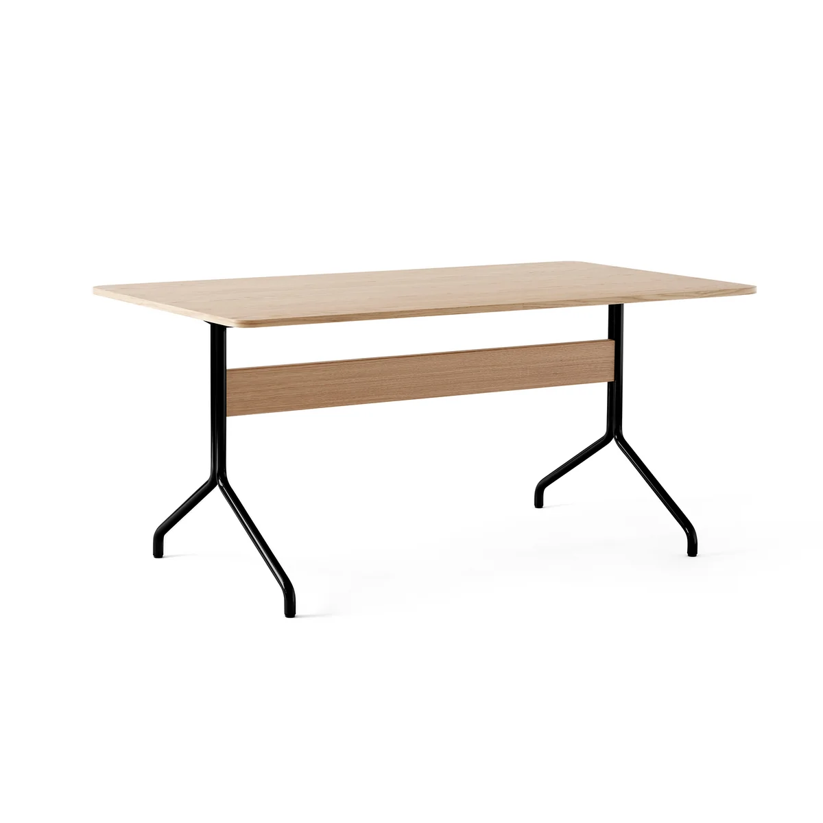 De Pavilion Dining eettafel van het Deense bedrijf & Tradition kan op verschillende manieren worden gebruikt in het woongedeelte. Afhankelijk van de uitvoering biedt de tafel optimale ruimte voor de liefste gasten. Het kan echter ook worden gebruikt als bureau in de studeerkamer naast de klassieke versie in de woonkamer. Paviljoen bestaat uit een tafelblad bekleed met Lionoleum met gefineerde randen. De poten zijn gemaakt van gebogen stalen buizen. De achterkant van de tafel is gemaakt van voorgevormd fineer. Verkrijgbaar in verschillende maten en houtuitvoeringen.