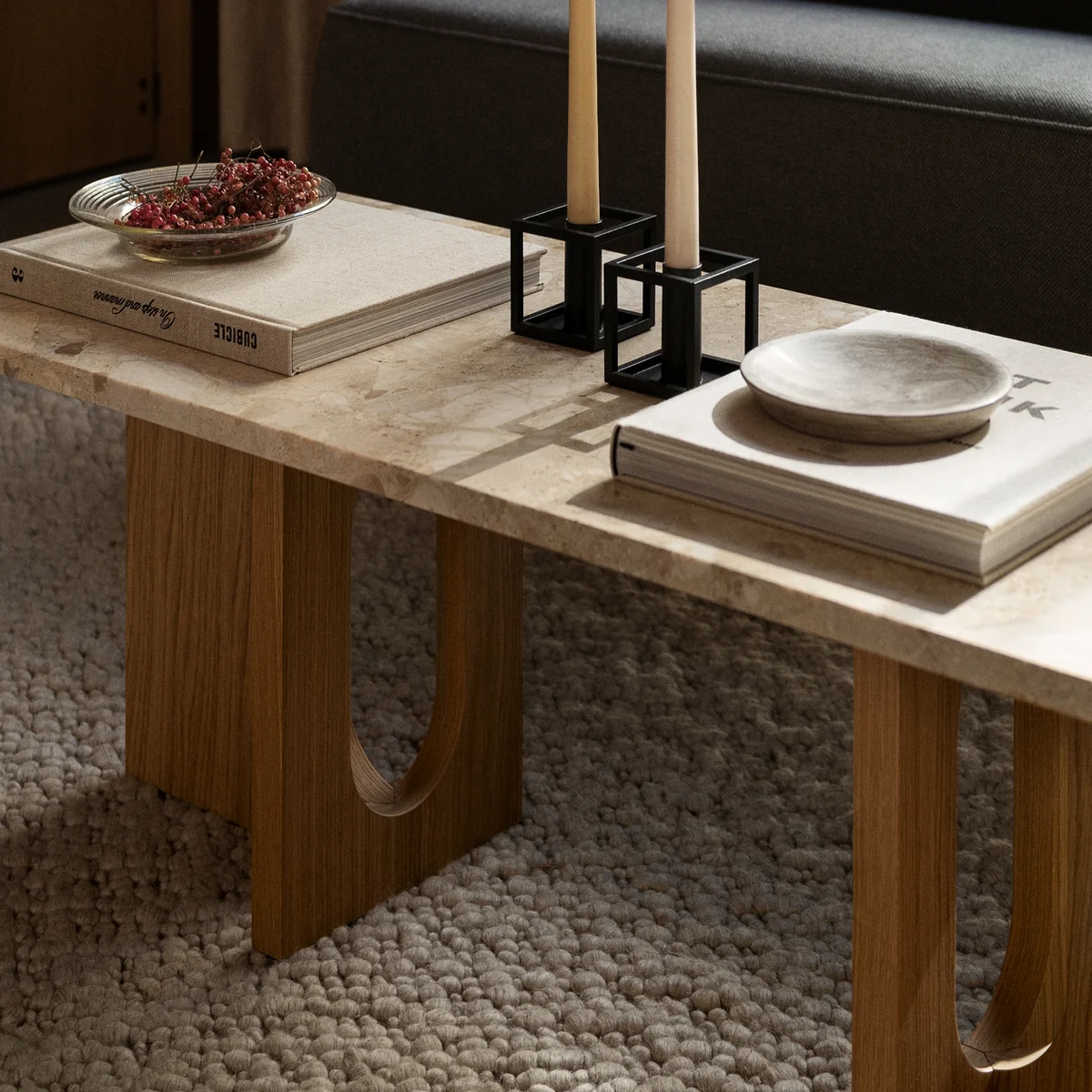 Oorspronkelijk ontwikkeld door de Noorse architect en ontwerper Danielle Siggerud als een moderne en veelzijdige tafel voor het voormalige showroomcafé op Audo , wordt de salontafel gekenmerkt door eenvoudige silhouetten en verfijnde materialen. Androgyne De salontafel wordt gekenmerkt door eenvoudige silhouetten en verfijnde materialen.