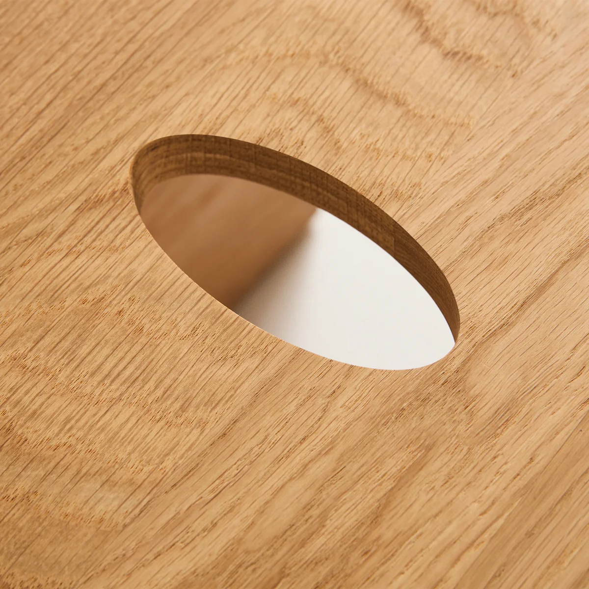 De salontafel Wood Box van HAY , ontworpen door Jonathan Muecke, combineert nauwkeurig vakmanschap met een duidelijke, sculpturale designtaal. Hij is gemaakt van massief eikenhout en maakt indruk met zijn harmonieuze proporties, naadloze overgangen en een puzzelachtige constructie die meteen in het oog springt. Als kleine salontafel, bijzettafel bij het bed of als op zichzelf staand kunstobject - dit designstuk past moeiteloos in zowel moderne als klassieke woonruimtes. Dankzij de verschillende oppervlakteafwerkingen kan de tafel perfect worden aangepast aan individuele inrichtingsstijlen.