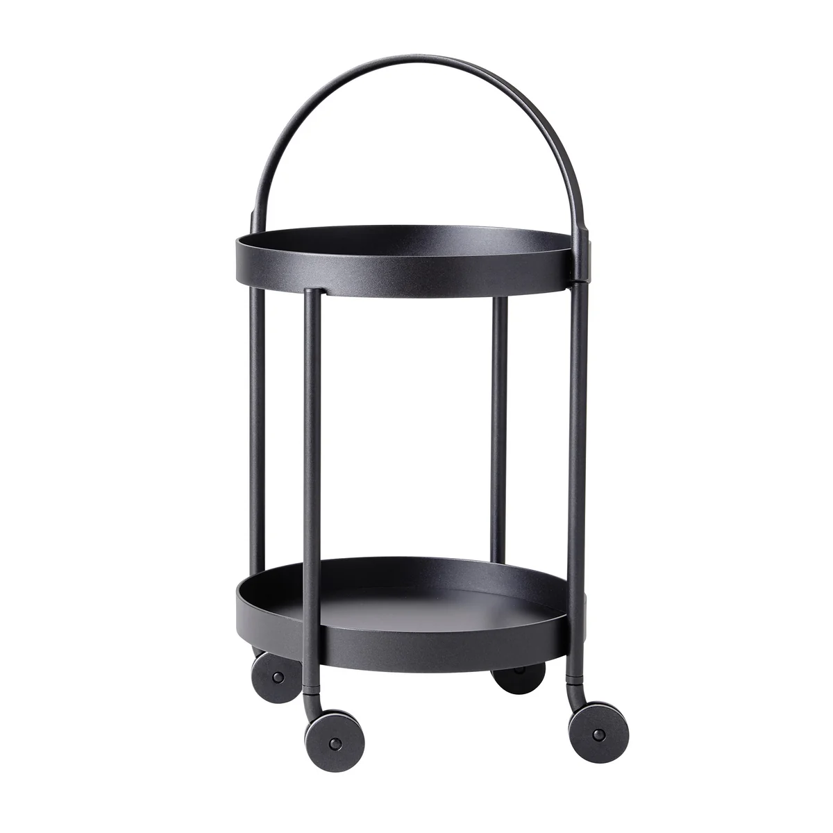 Roll is gemaakt van gecoat aluminium. Dus de Trolley weerbestendig en duurzaam. Het is ook verkrijgbaar in verschillende maten en tijdloze kleuren. De kleine uitvoering met twee planken, vier wielen, een draagbeugel en een diameter van 44 cm is bij uitstek geschikt als flexibele bijzettafel op het balkon of in de woonkamer. Verfrissingen, glazen, boeken, de zonnebril en co. vinden er een mooi plekje op. De bovenste plank kan worden verwijderd en gebruikt als een onafhankelijk dienblad met handvat.