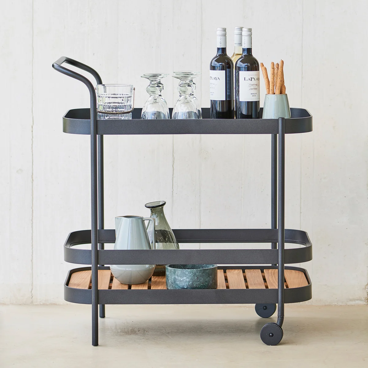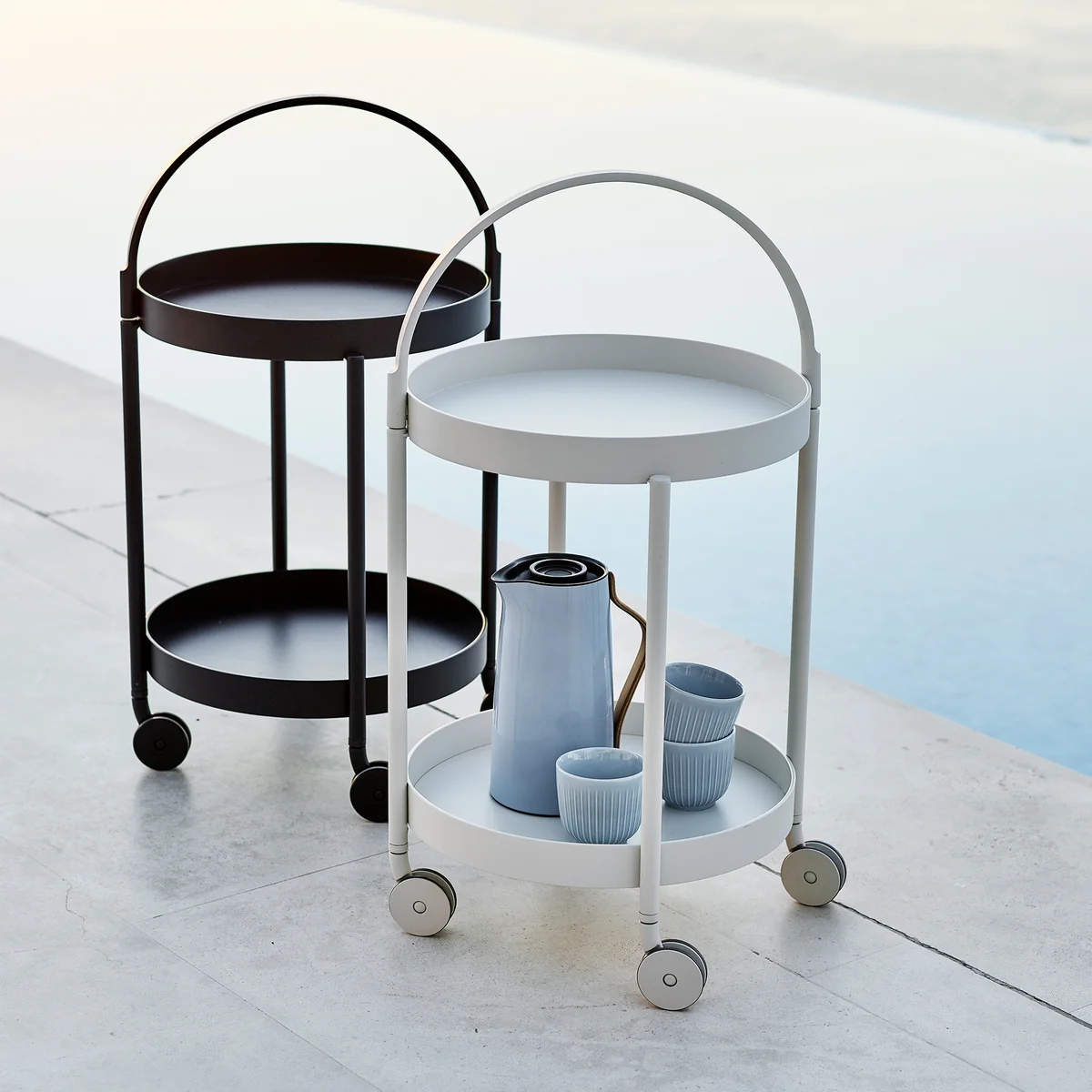 De Roll Trolley Outdoor van Cane-line is een praktische en minimalistische serveerwagen in een tijdloze Scandinavische stijl. Het is ontworpen door de Welling design studio & Ludvik. Met de trolley heeft de studio een Outdoor -meubilair, waarbij elk detail een functioneel doel vervult. De wagenwielen maken Roll naar een flexibele en transporteerbare trolley die zowel binnen als buiten veel comfort biedt.