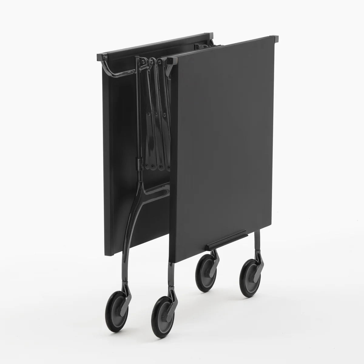 Met behulp van een praktisch gecombineerd vouw- en schaarmechanisme is het uitklappen snel en eenvoudig. Als de tafel niet nodig is, kan hij gemakkelijk worden geparkeerd met een compacte opbergruimte. Opgevouwen past de elegante serveerwagen in elke opening in de keuken, eetkamer of kantoor.