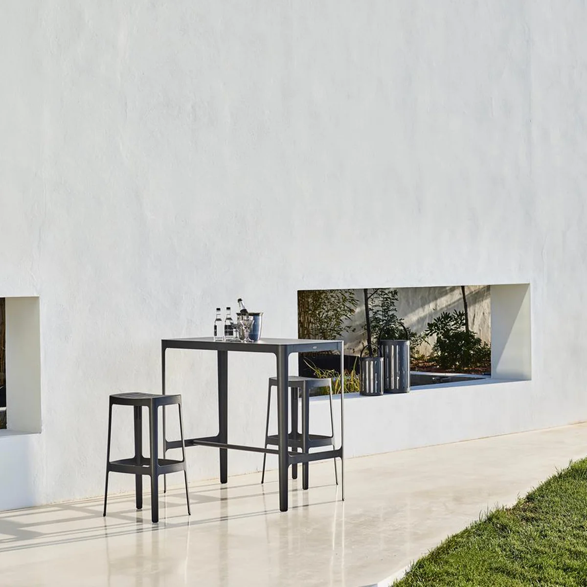 De Cut bartafel van Cane-line is speciaal ontworpen voor de hoge Cut barkruk . Het geeft een zeer tijdloze uitstraling aan de kamer en is gemaakt van licht, duurzaam aluminium.