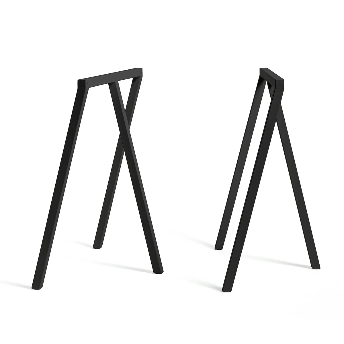 De driepotige tafelschragen zijn een vereenvoudiging van de zaagbok zoals we die kennen uit de industrie. Loop Stand Frame Loop Stand Frame Ze zijn gemaakt van gepoedercoat staal en zijn verkrijgbaar in twee maten: de iets lagere versie voor de eettafel ( ) en de hogere versie voor het bureau ( High). Omdat de twee tafelschragen in een set van 2 worden geleverd, zijn ze ideaal als basis voor een tafelblad. De drie poten vormen een meer dan solide basis. In de hogere versies worden de tafelschragen de kapstok Loop .