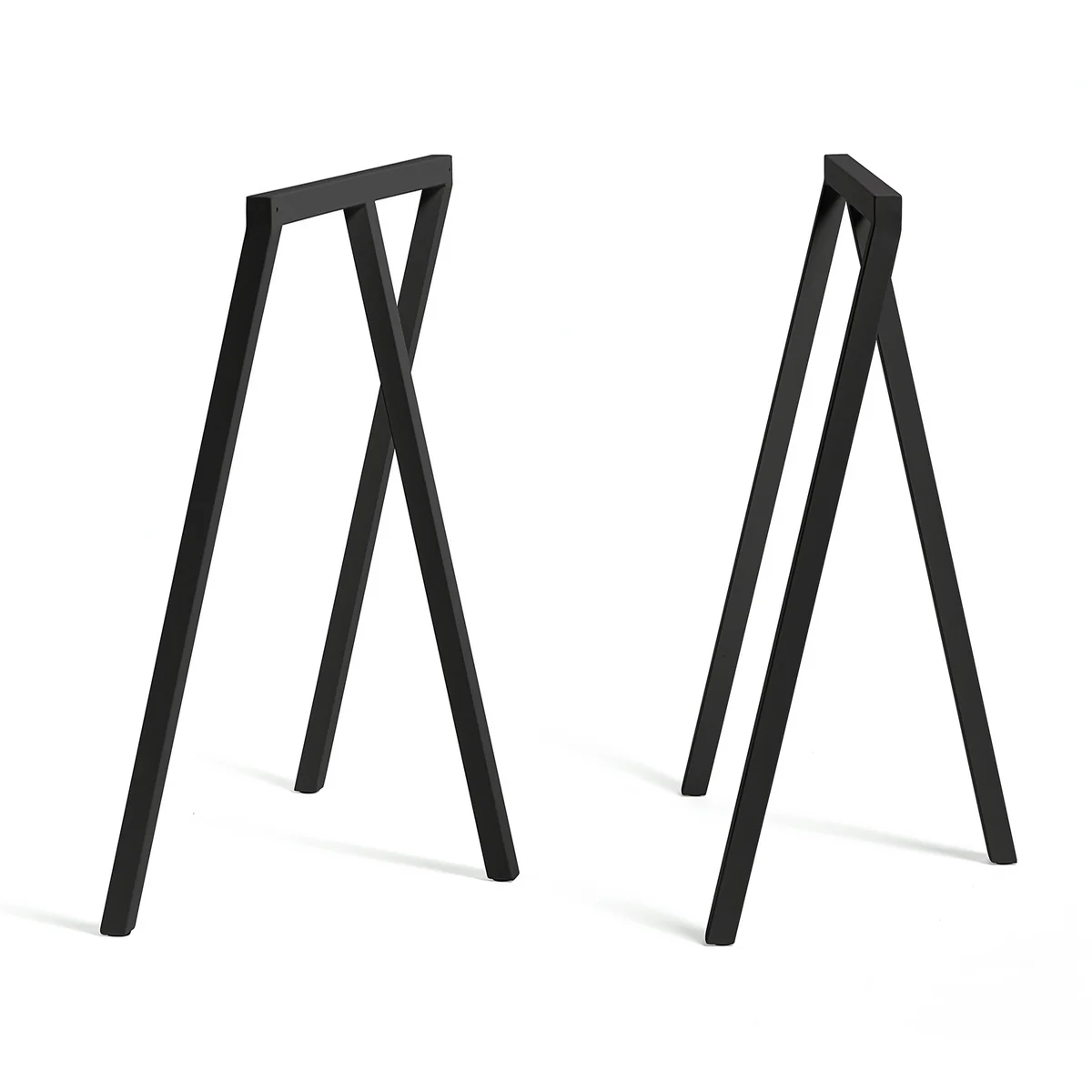 De driepotige tafelschragen zijn een vereenvoudiging van de zaagbok zoals we die kennen uit de industrie. Loop Stand Frame Loop Stand Frame Ze zijn gemaakt van gepoedercoat staal en zijn verkrijgbaar in twee maten: de iets lagere versie voor de eettafel ( ) en de hogere versie voor het bureau ( High). Omdat de twee tafelschragen in een set van 2 worden geleverd, zijn ze ideaal als basis voor een tafelblad. De drie poten vormen een meer dan solide basis. In de hogere versies worden de tafelschragen de kapstok Loop .